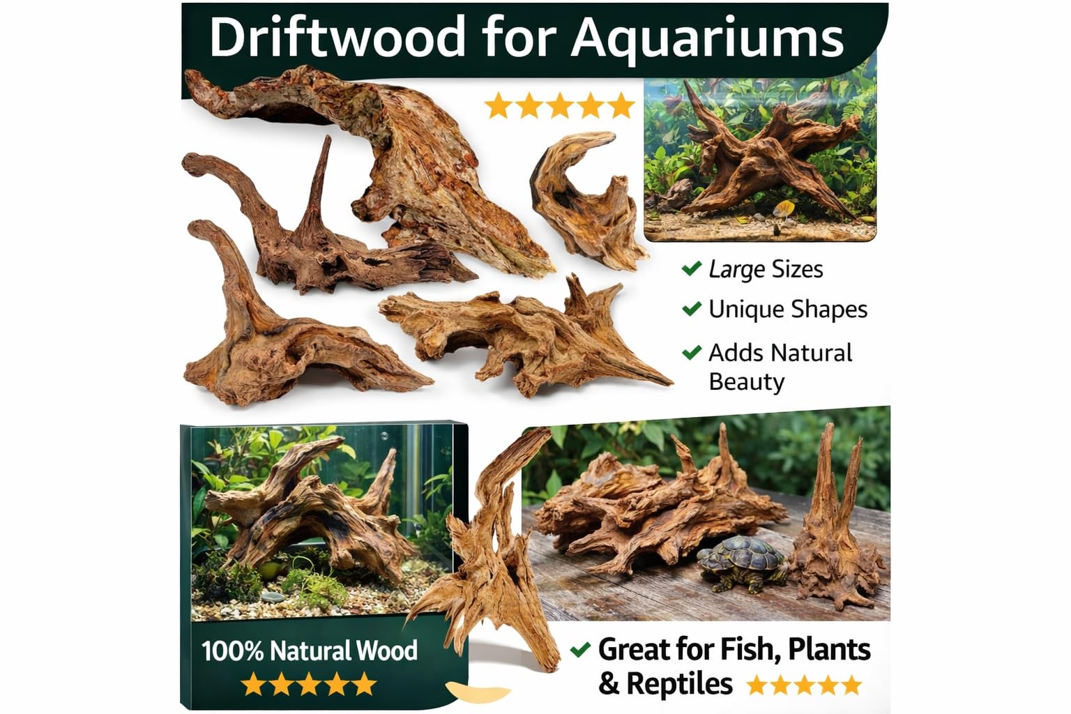 - 100% Natural & Unique: Each piece of natural aquarium driftwood is one of a kind, crafted from high-quality natural wood, completely safe for fish and aquatic plants.