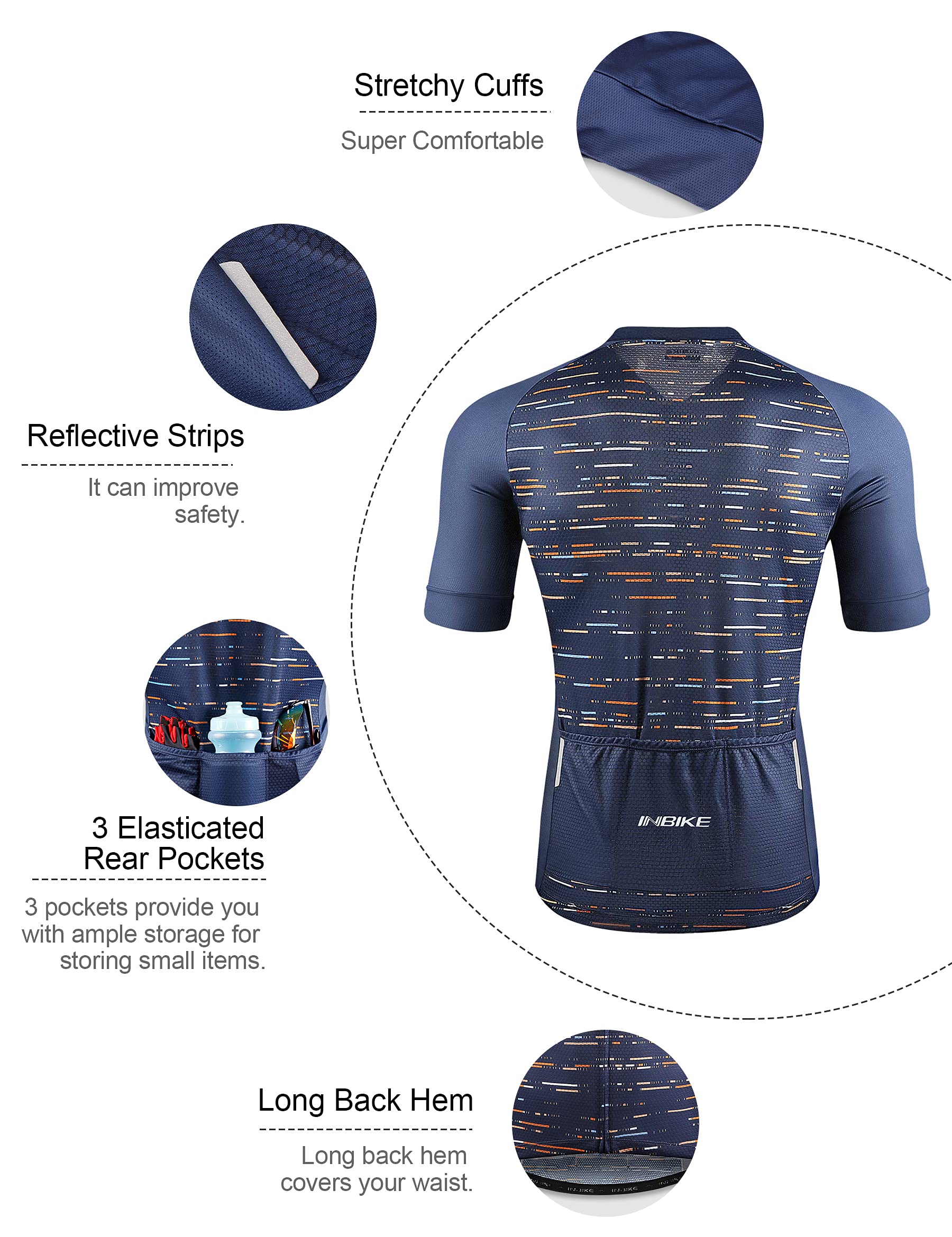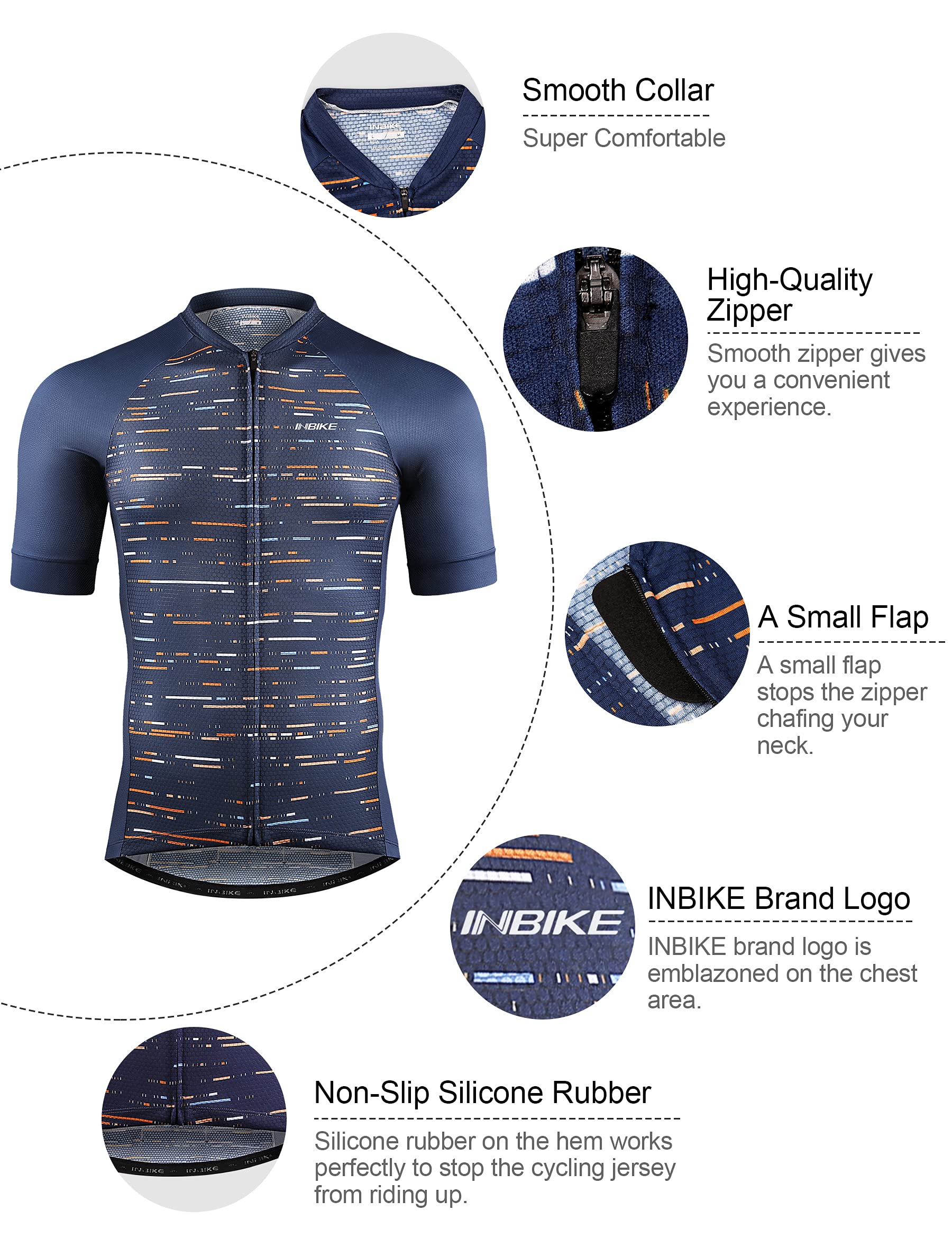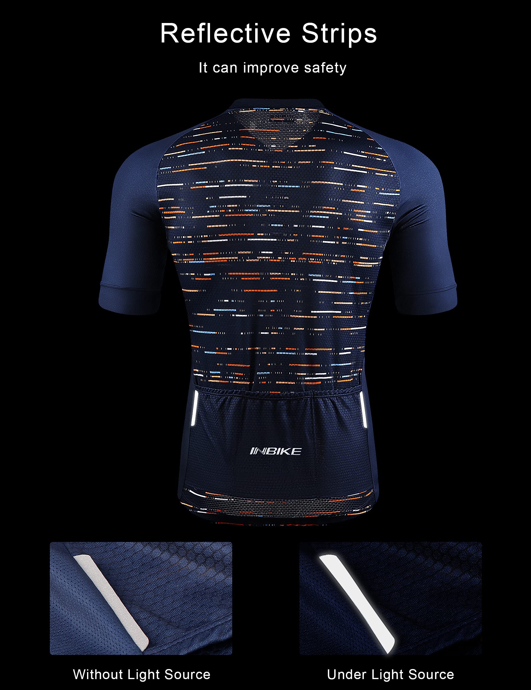 [Humanized Design]: High-Quality Zipper; A Small Placket ; Reflective Strips; 3 Elasticated Rear Pockets; A Small Piece of Fabric Reinforcing—INBIKE keeps forging ahead in an innovative way to provide the most comfortable and perfect experience for customers.