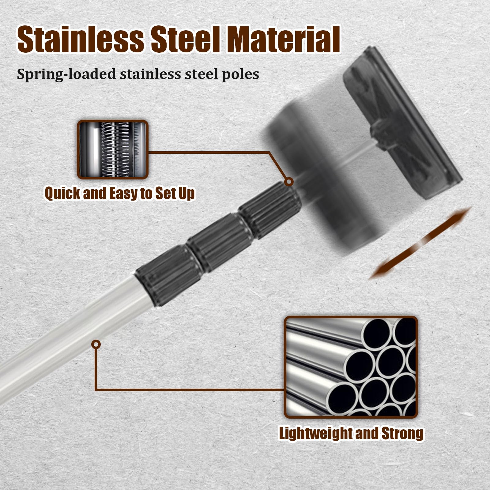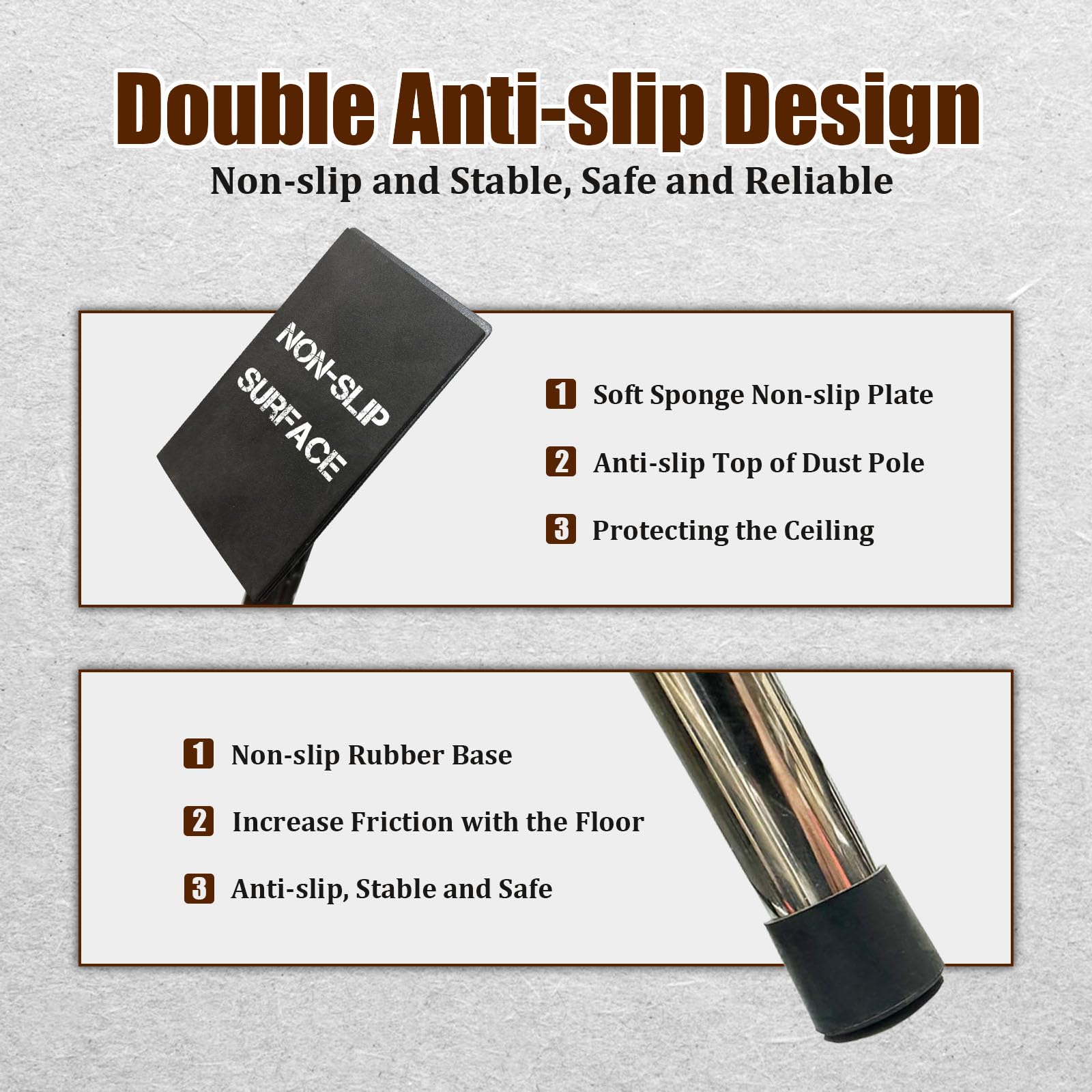 Anti-Slip Design, Secure Stable: Dust poles feature a sponge pad at the top to prevent sliding and protect the ceiling, while the anti-slip base keeps them stable on the floor for secure stable.