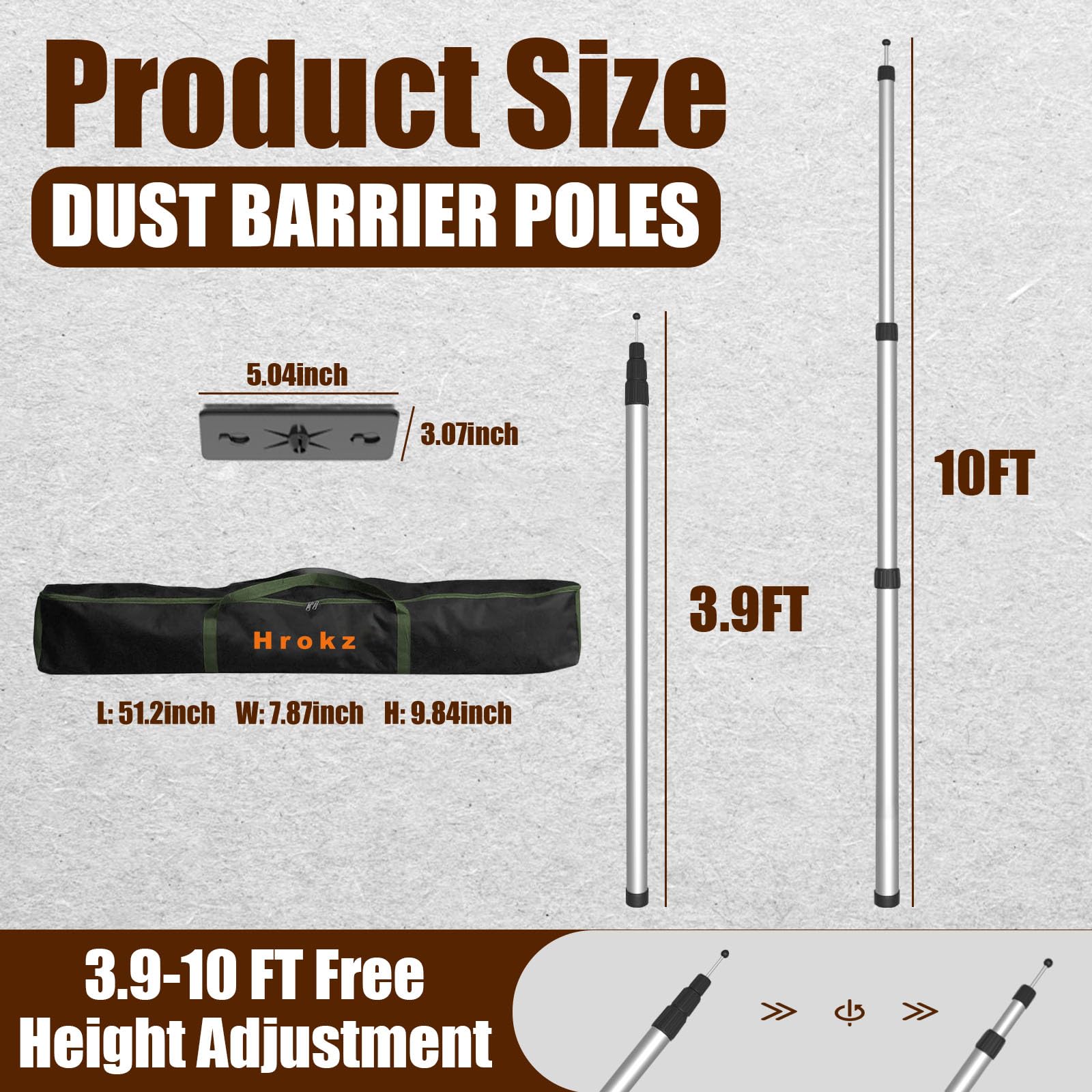 Stainless Steel Material, Light and Strong: Dust barrier systems include four lightweight spring-loaded stainless steel poles, built for durability, providing a reliable dust experience.