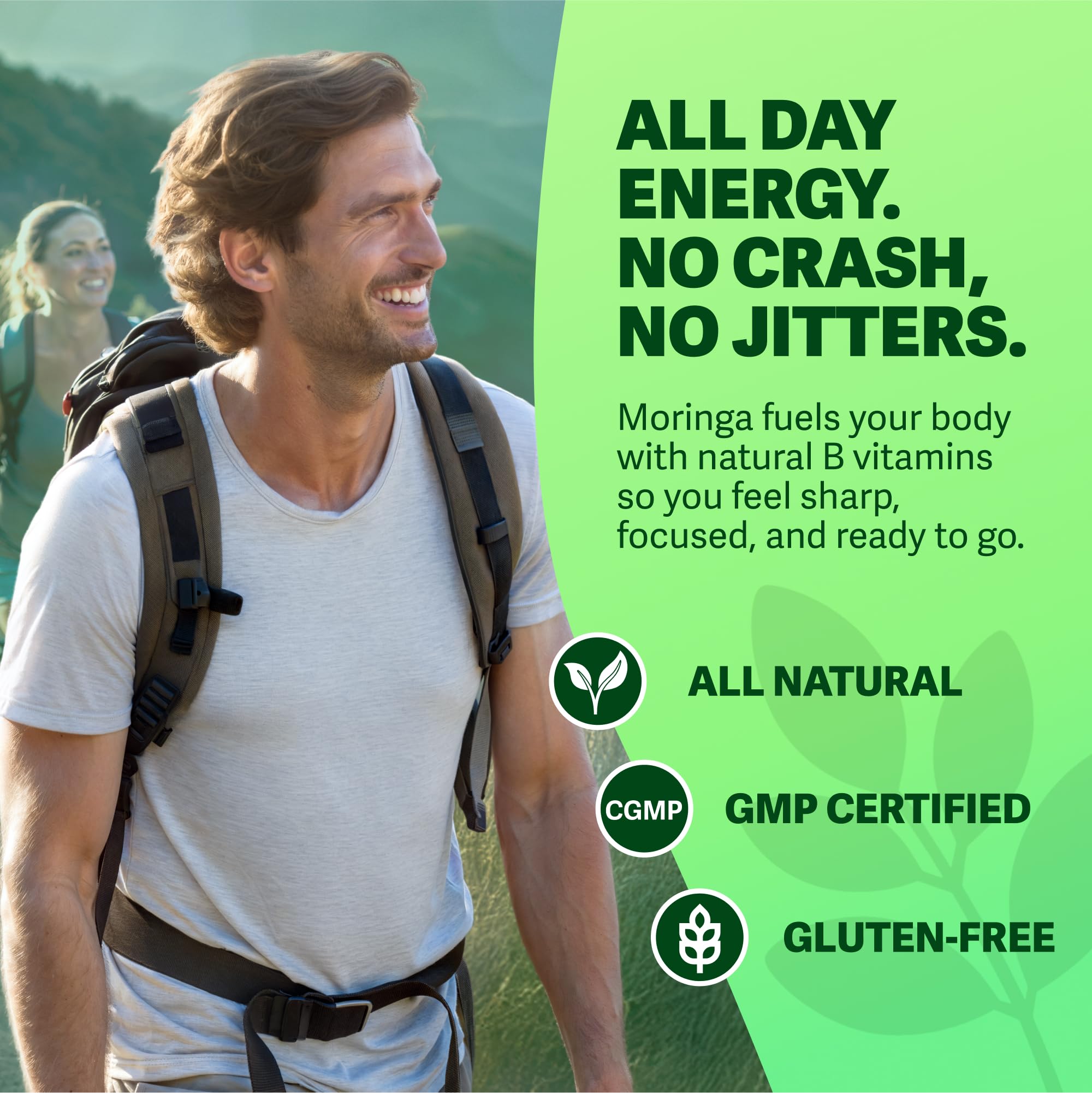 Clean & Conscious Herbal Supplement – Manufactured in the USA with globally sourced ingredients and 3rd party tested for quality and purity. No fillers, binders, or synthetic additives – just ethically sourced pure moringa leaves in easy-to-swallow vegan capsules, suitable for women and men.