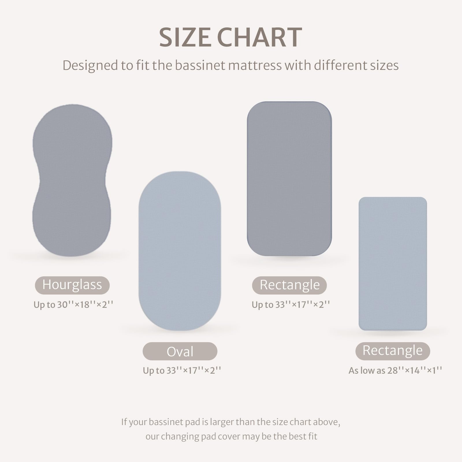 Snug and Secure Fit: Measuring 32 ''x 17 '', the bassinet sheet fits most oval, hourglass and rectangle mattresses for a sung fit. Plus, with an elastic band to keep the bed sheet in place, the bassinet sheet is secure and safe for babies to play