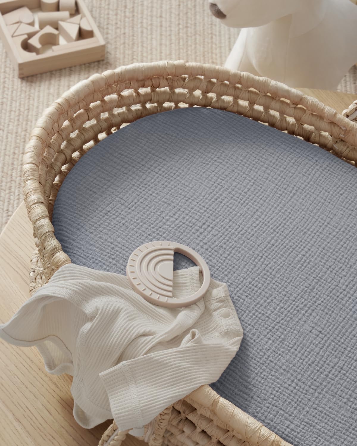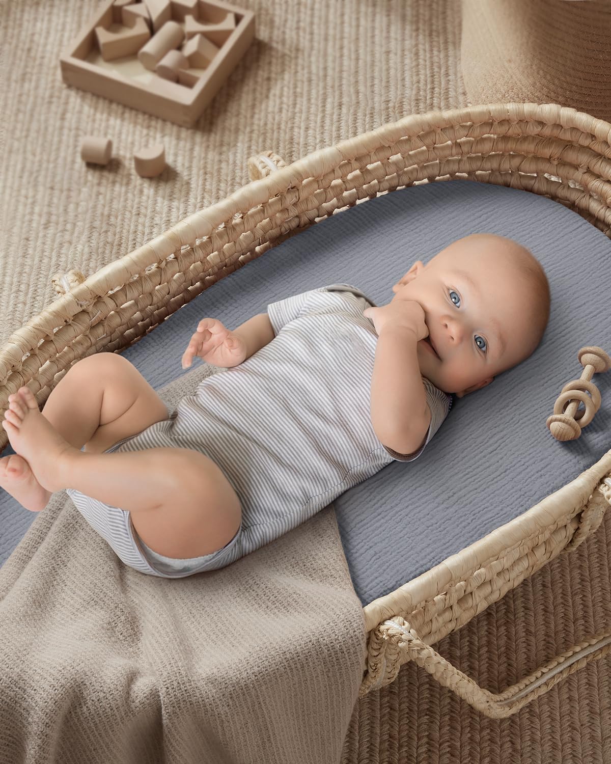 Premiun Muslin Cotton: Made from muslin cotton, our bassinet sheets are cozy and breathable in all seasons, making babies a better sleep. Plus, the soft muslin material is friendly for your baby's delicate skin
