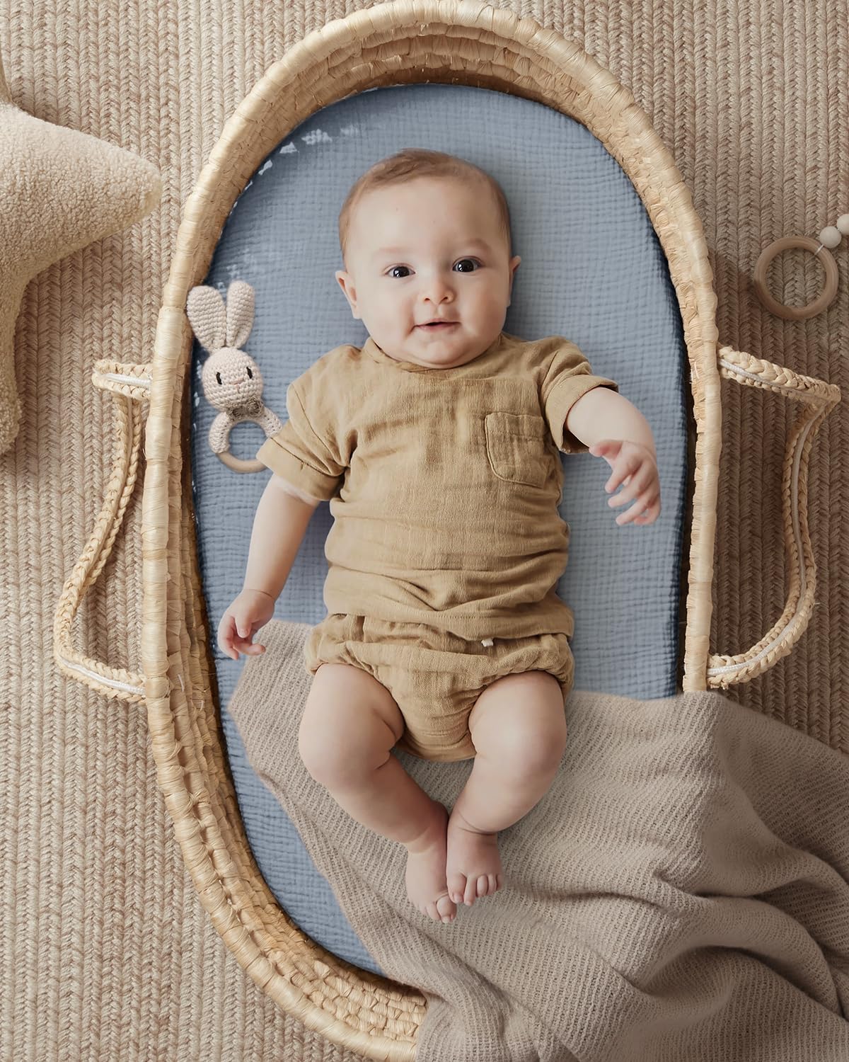 Easy To Care: Made from premium double-layer fabric, our muslin bassinet sheets fitted are durable to use, staying soft and no fading or pilling after machine washing