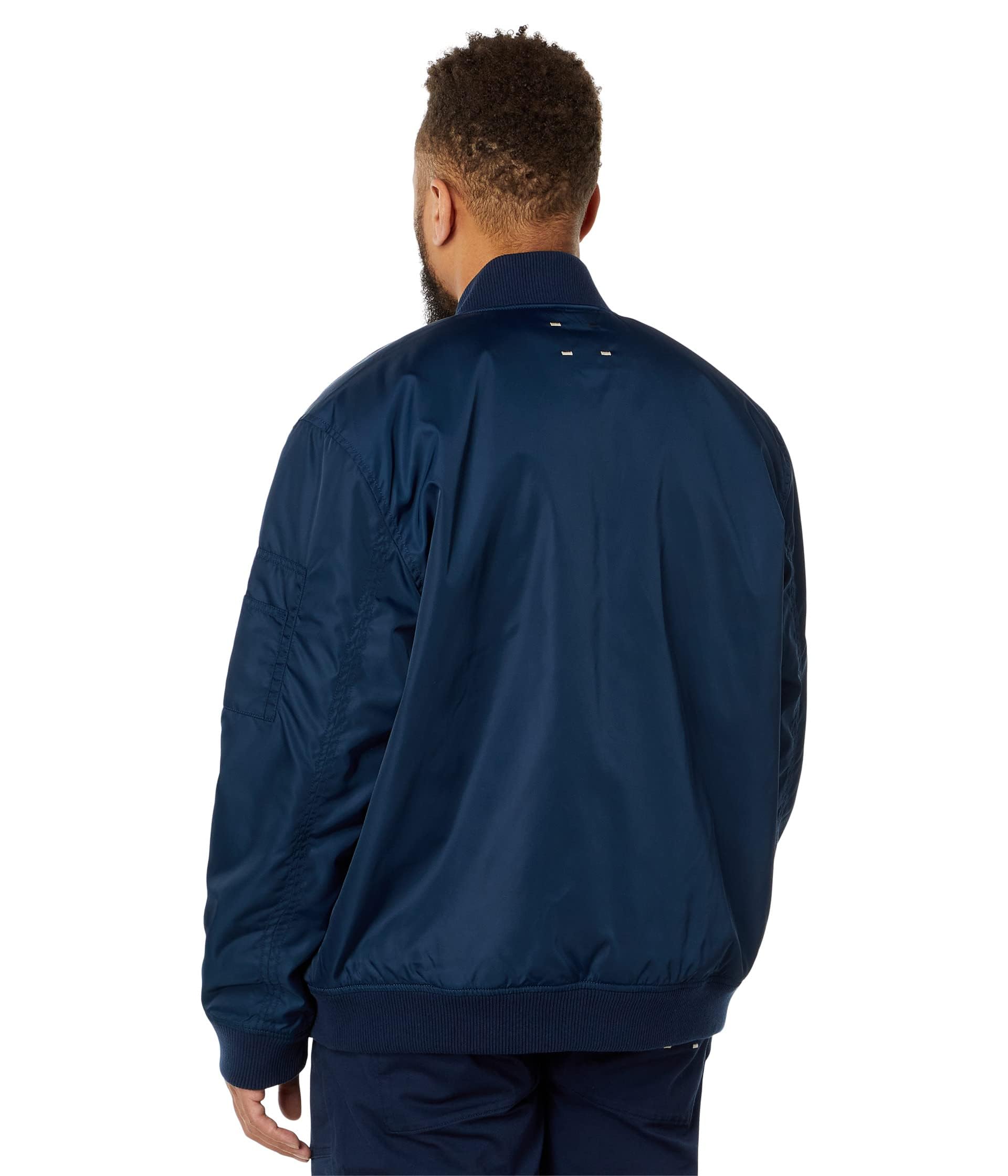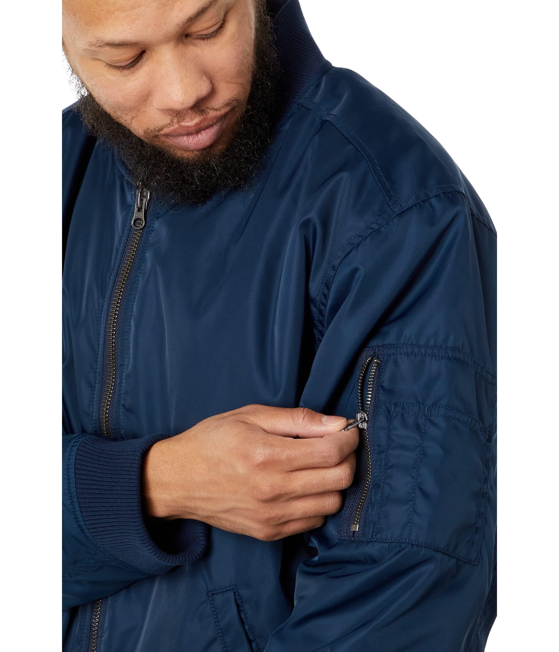Description Stay stylish in warm comfort with the LABEL Go-To Bomber Jacket. Classic silhouette. Eco down alternative insulation. Low cut standard collar. Long sleeves with fitted cuffs. Sleeve pocket with zip closure. Interior pocket. Two way zipper closure for ease of movement and wearability. 100% nylon. Machine wash cold, tumble dry.