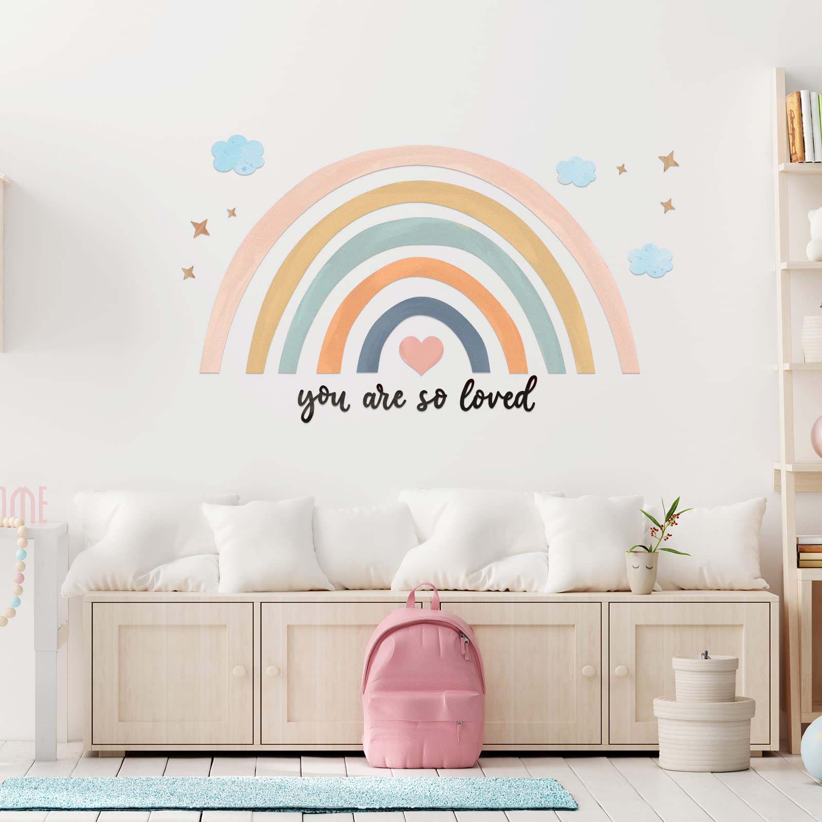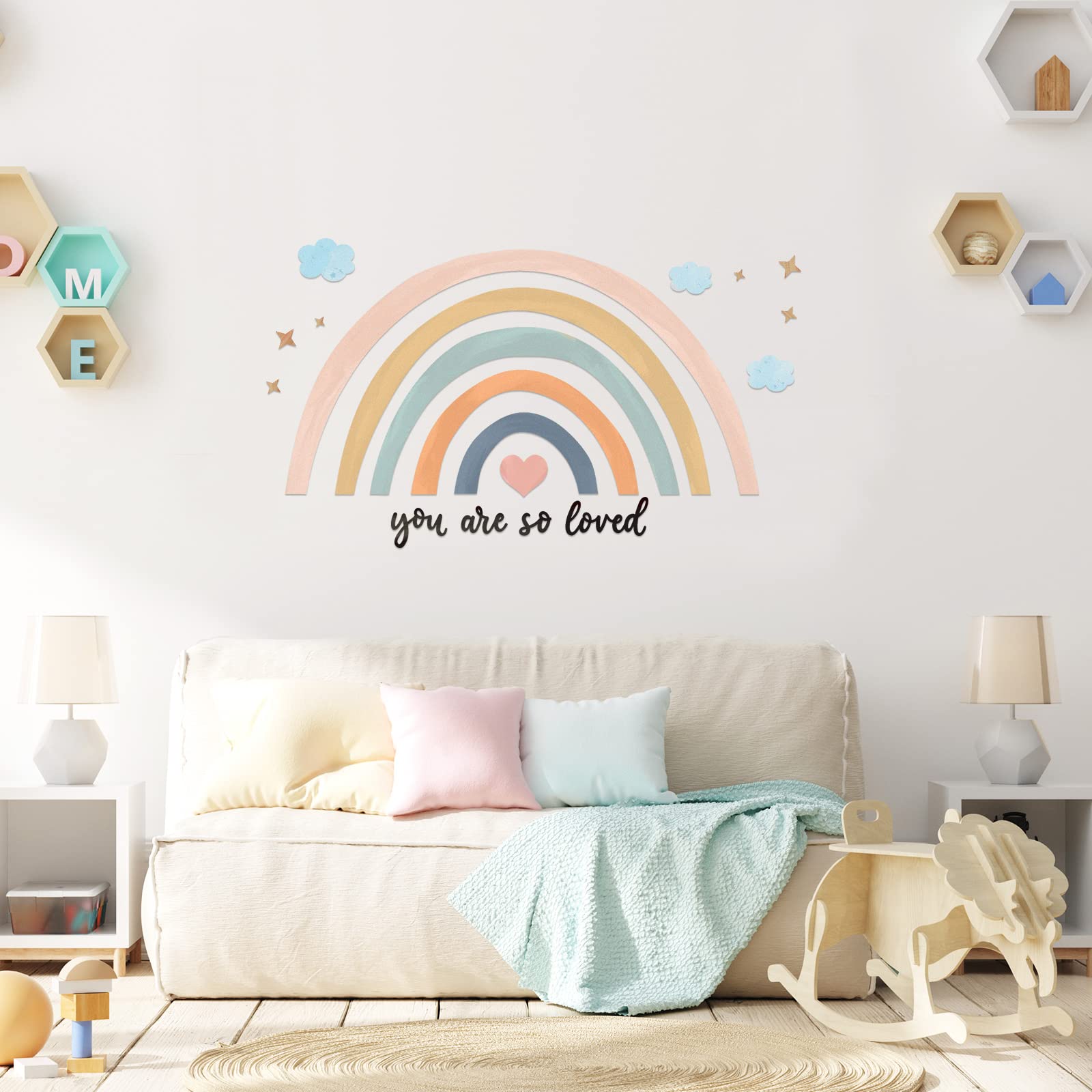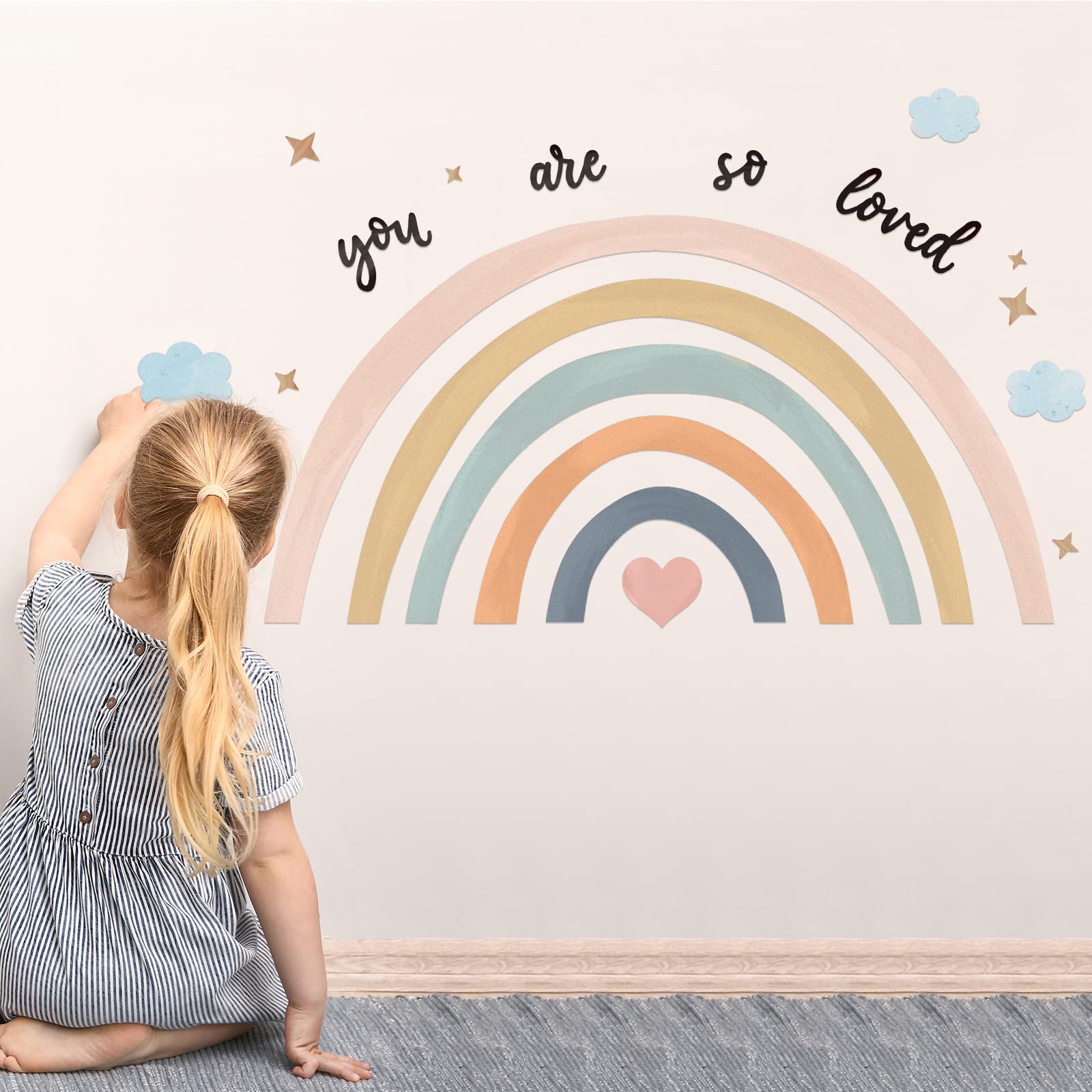 Easy to peel and stick: rainbow decals for girl room are easy to stick on your wall; Just peel and stick the decal to the wall, children can do it independently; Can be applied to any smooth and clean surfaces, such as smooth wall, refrigerator, wardrobe, windows and doors; Remember to wipe the surface before using pastel rainbow wall decal for better effect