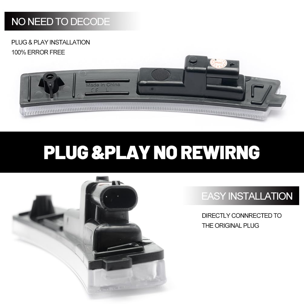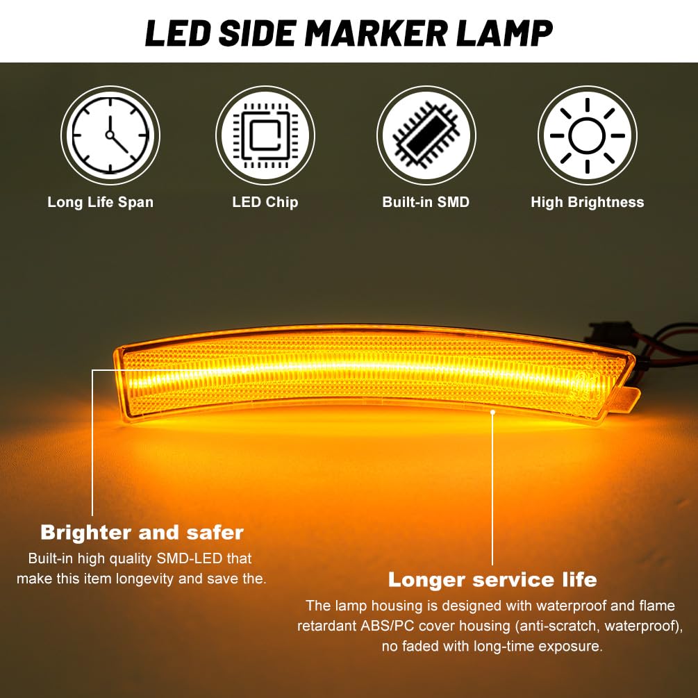 What will you get: 2pcs LED Side Marker Turn Signal Light Assembly that passed CE E4 certification. Professional guidance and friendly customer service to solve any problems you encounter in use