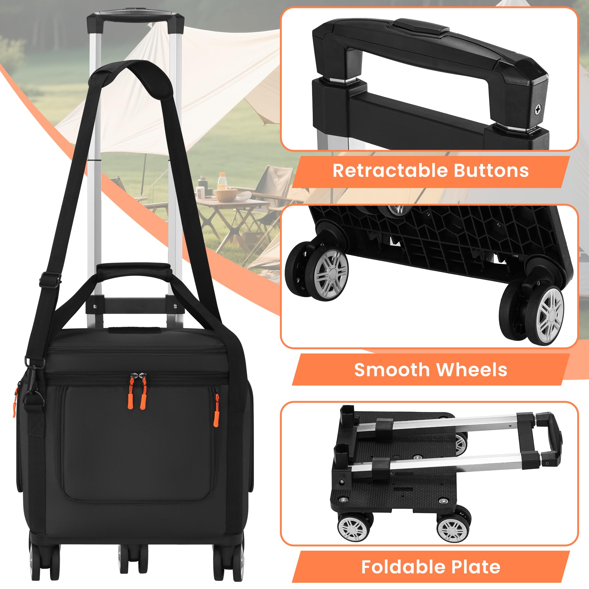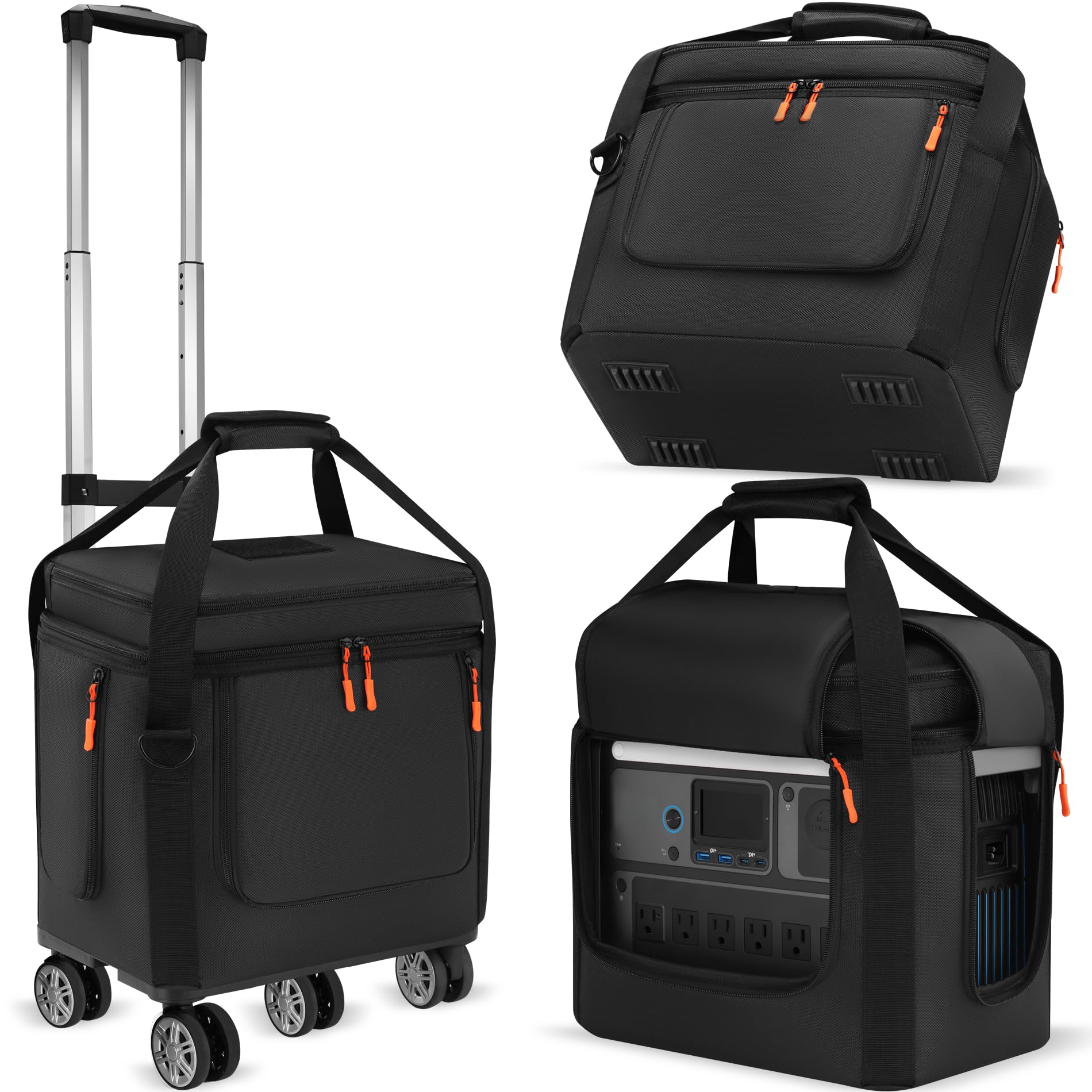 Removable Convenient Wheeled Trolley:Portable power station case with adjustable, removable shoulder straps with wheels and trolley.You can use it easily on your travels, and there are a variety of ways to carry it. It is made of soft, wear-resistant material that keeps you comfortable even after long hours of carrying