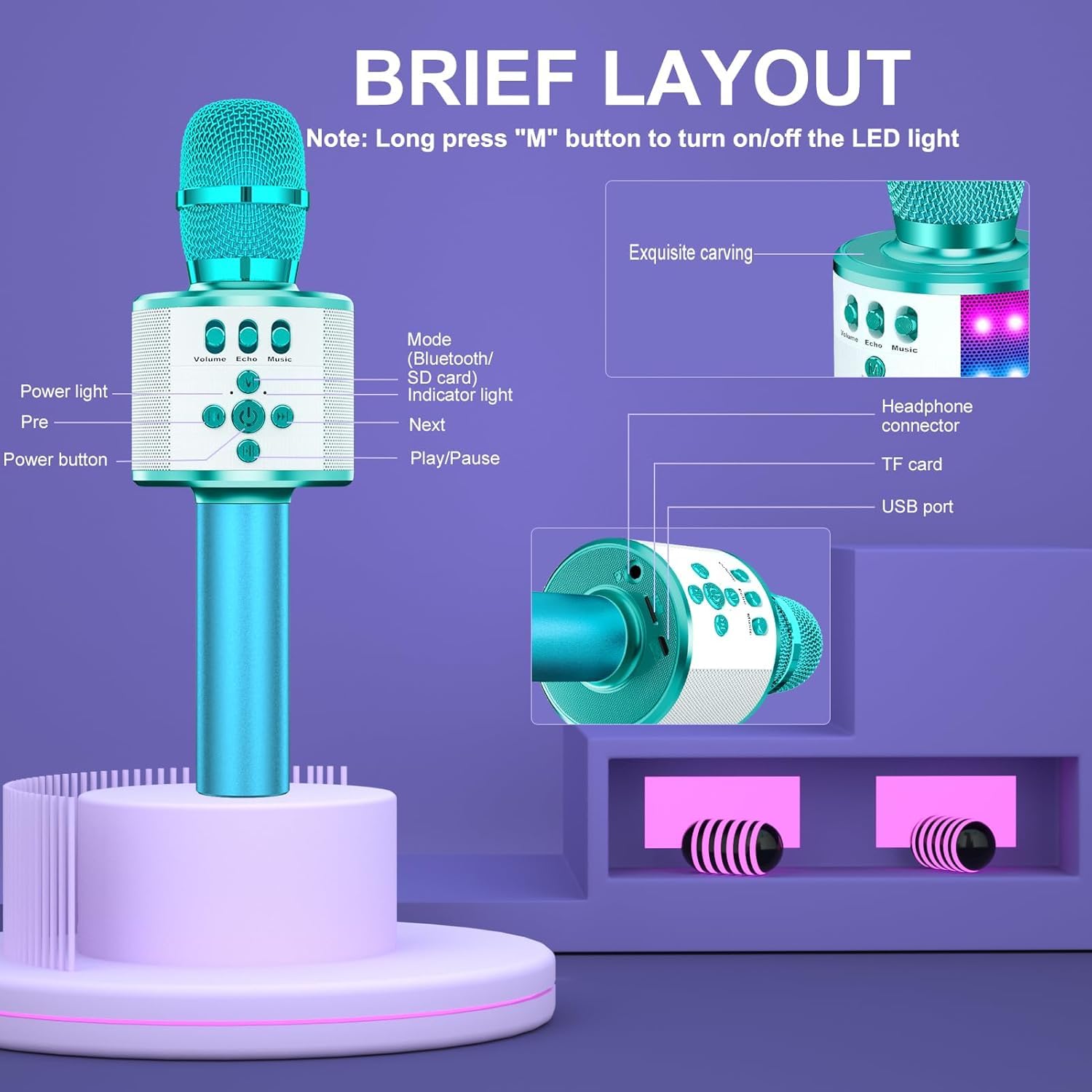 【Great Gift Ideas】— BONAOK microphone is a party favor for 4 5 6 7 8 9 10 11 12 years old toddlers, girls, boys, and teenagers. A great gift idea for holidays and activities(Valentine's Day, Easter, Christmas, Thanksgiving, New Year, etc).What you get(Q78 microphone,charging cable,giftable box, NO BLACK CASE for this color)