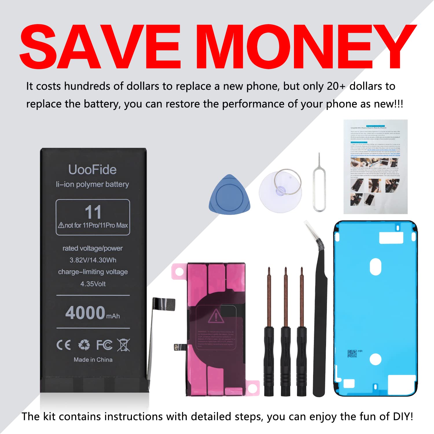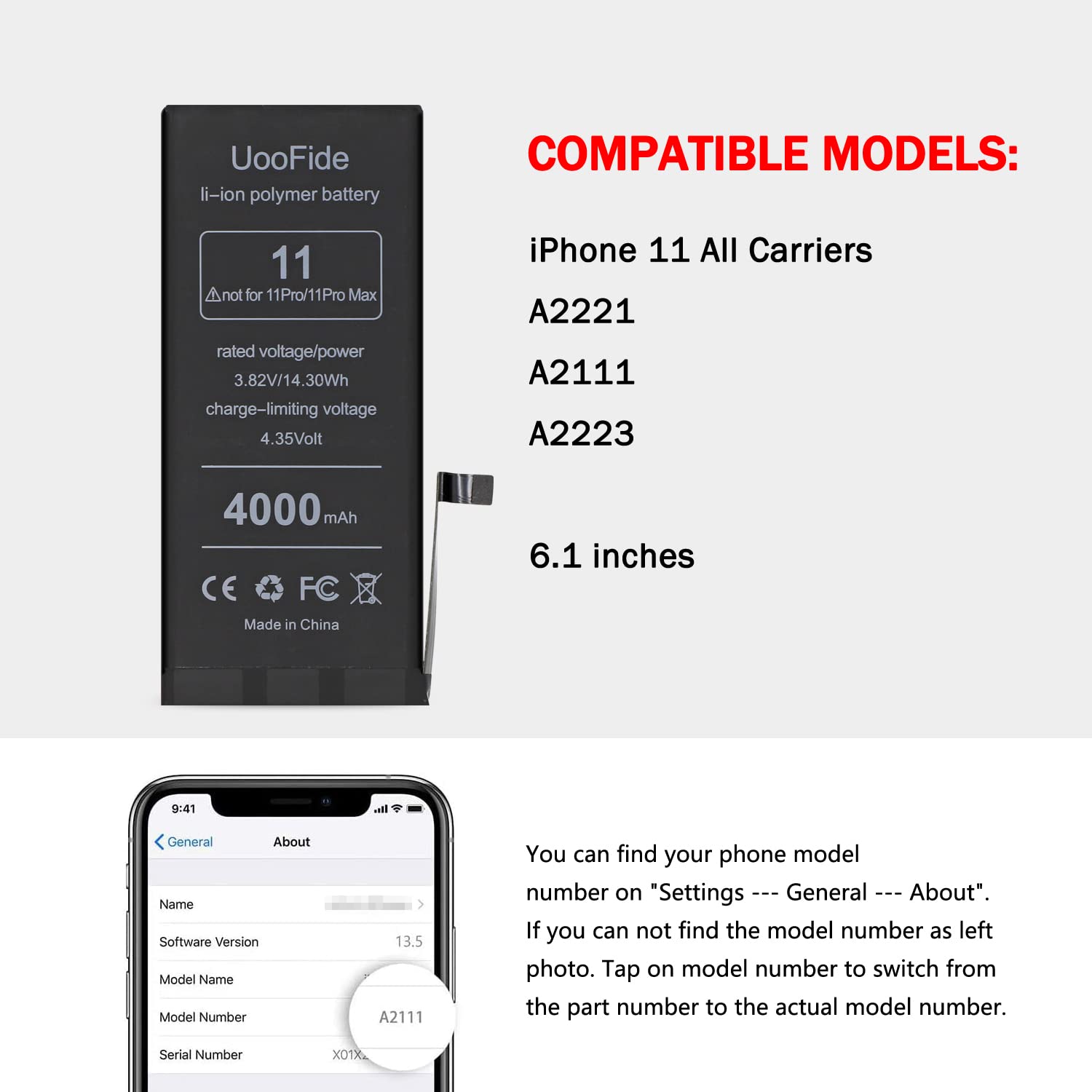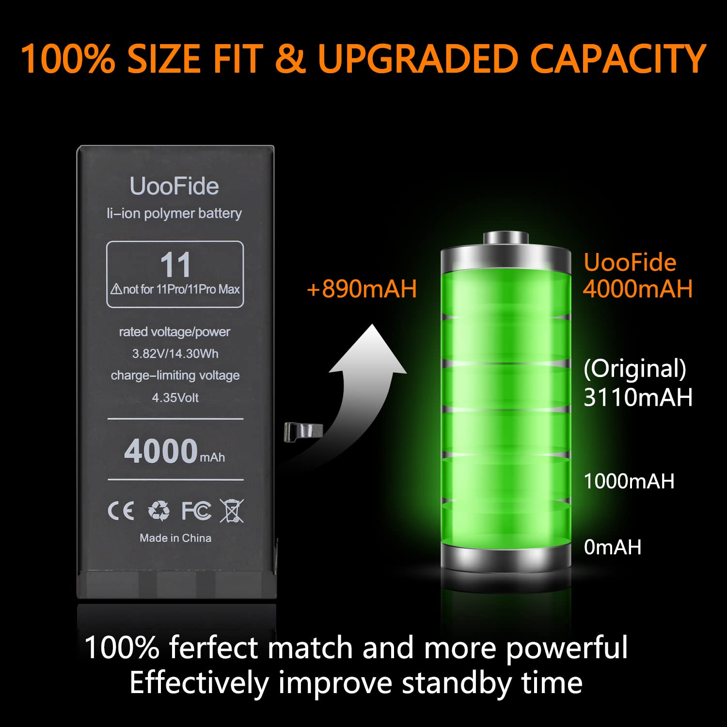【Feel Free To Contact Us For Any Questions】- We provide 12 MONTHS WARRANTY to our dear customers. If you have any questions about this upgraded iPhone 11 replacement battery, please don't hesitate to contact UooFide team directly, we will try our best to serve you. We cares every customers and your shopping experience is very important to us. UooFide take care of all quality-related issues with a refund or replacement. No risk, order now!!!