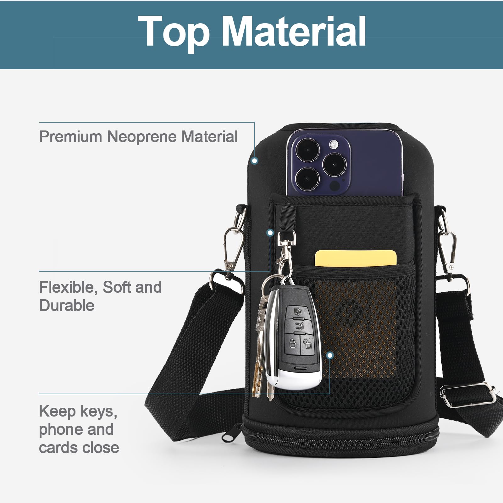 RAYMYLO Upgraded Water Bottle Holder for 64oz Bottles with an Adjustable Padded Shoulder Strap - Made of Premium Neoprene Material, Carry, Protect and Insulate Your Flask What You Get: 1 x Water Bottle Holder 1 x Adjustable Padded Shoulder Strap. 7 x 24H Online Continuous After-sales Service Please Note that the Maximum Size of Suitable Water Bottle is: Height: 9.84”(25 cm) Bottom Diameter: 4.92”(12.5 cm)