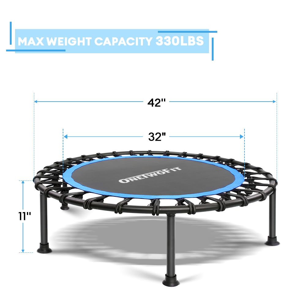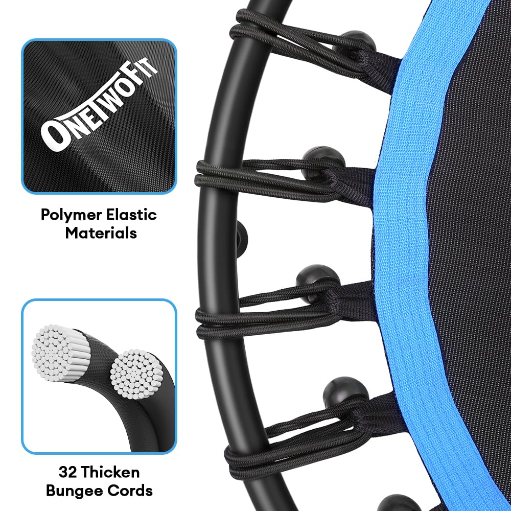 Stable Structural >>> ONETWOFIT Fitness trampoline made of STURDY PP MESH, anti-wear and tear resistant round rebounding surface, joint-friendly jumping by 30 bungee ropes, premium steel pipe frame & 6 legs supports user up to 330lbs.