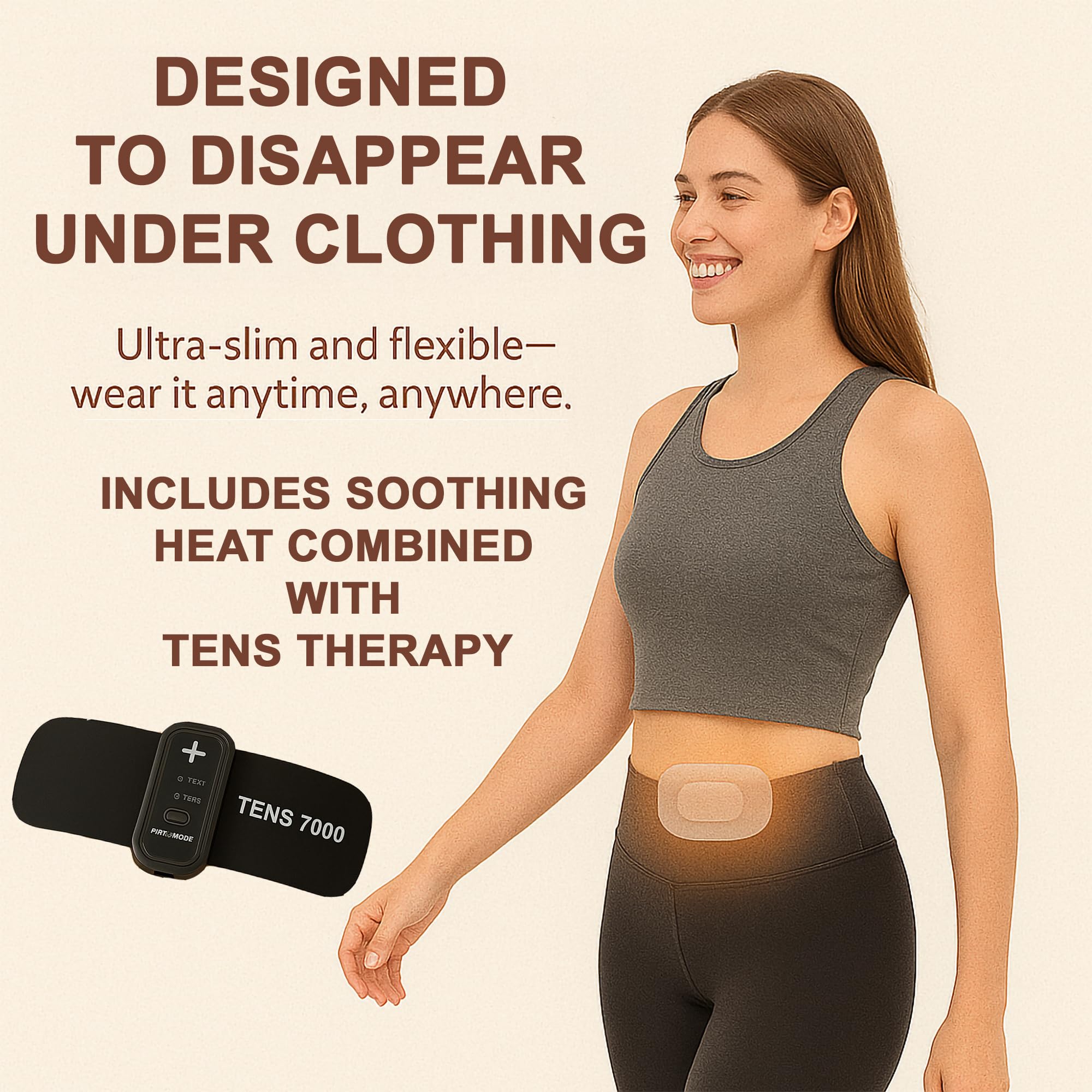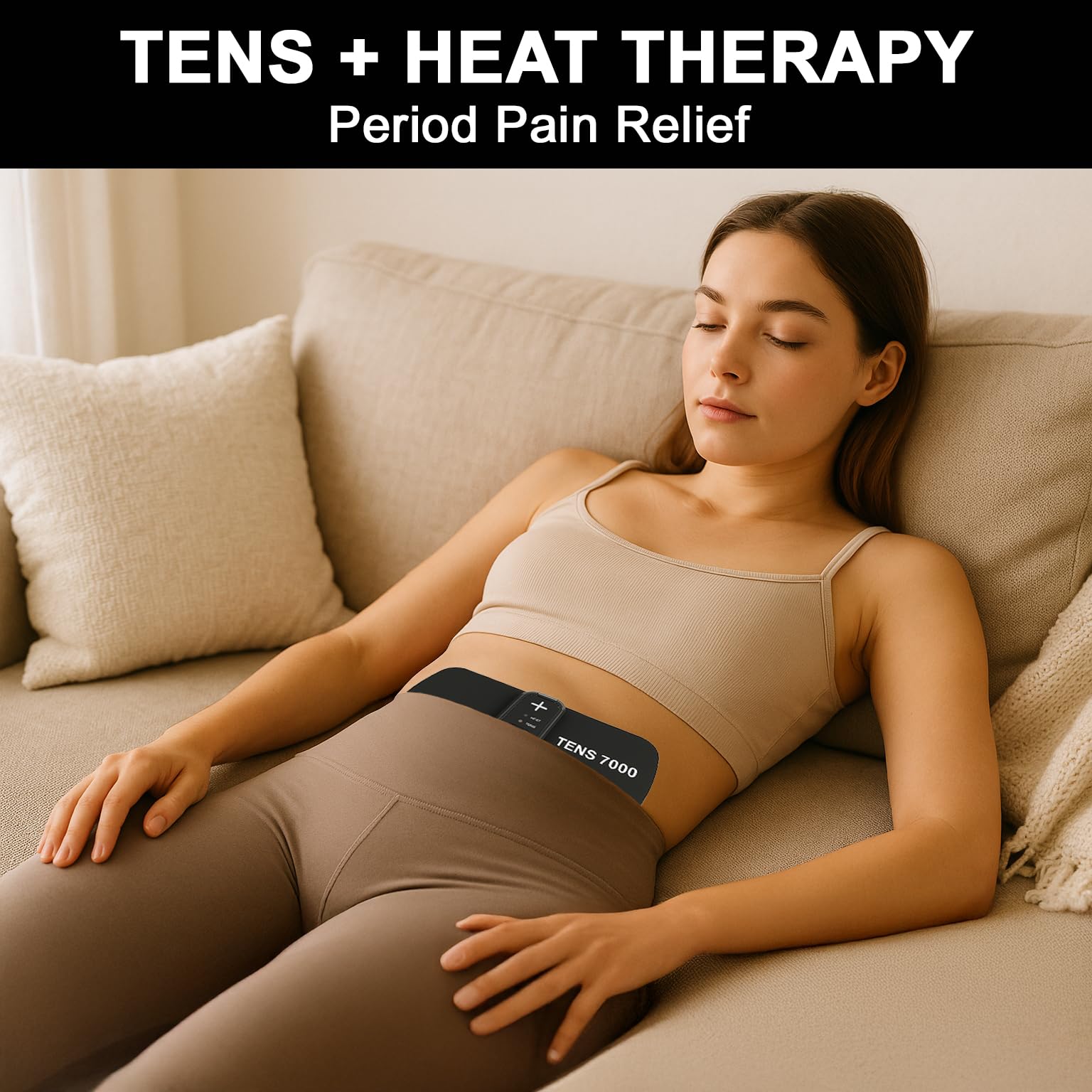 Include TENS Unit + Heat. Menstrual cramp relief via proven TENS technology — which sends small electrical impulses to block pain signals with soothing heat for enhanced comfort and faster cramp relief.