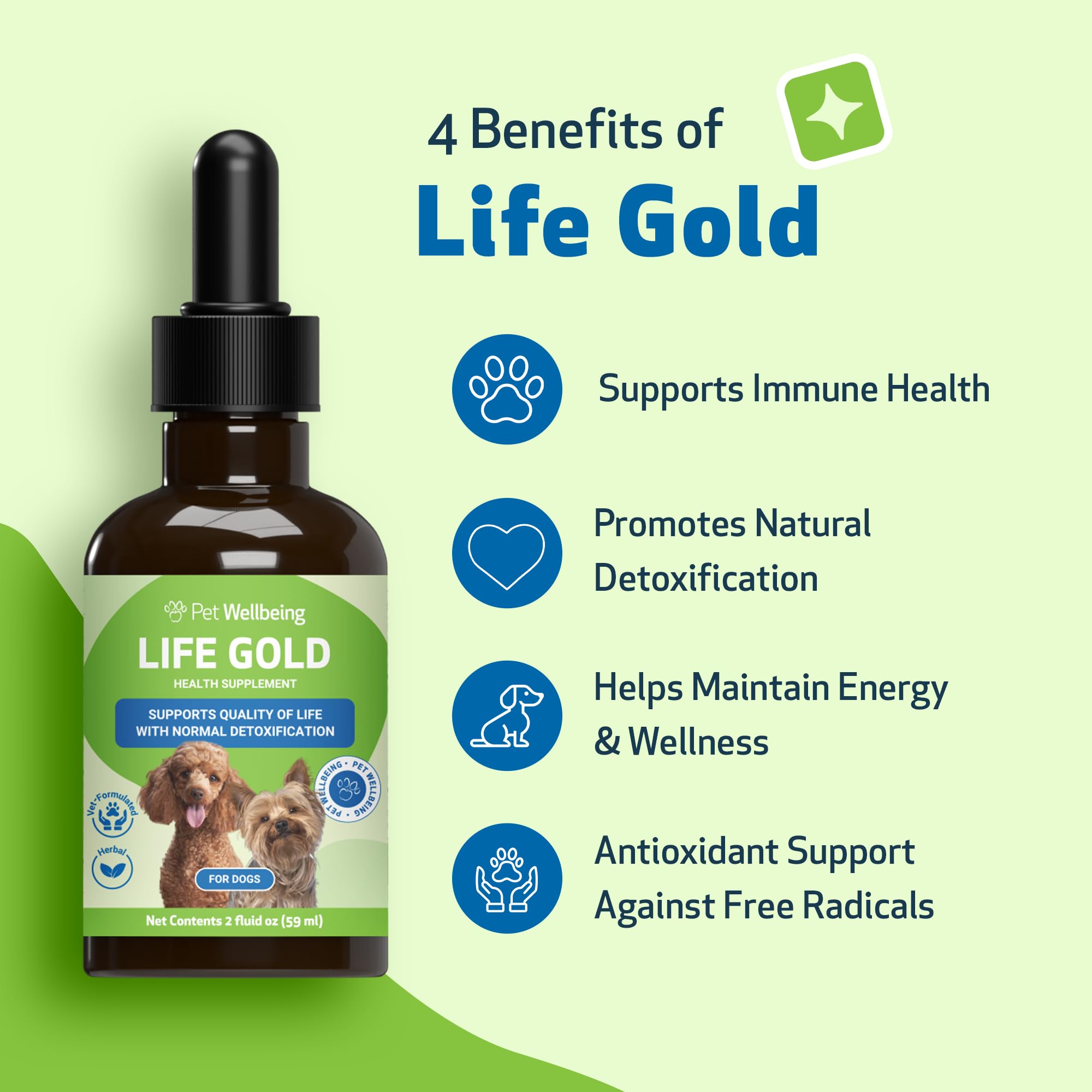 Pet Wellbeing Life Gold for Dogs - Vet-Formulated - Immune Support and Antioxidant Protection - Natural Herbal Supplement 2 oz (59 ml)