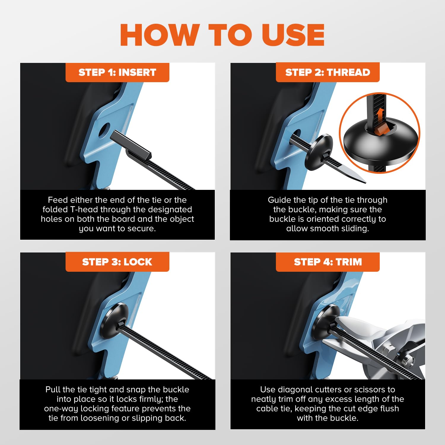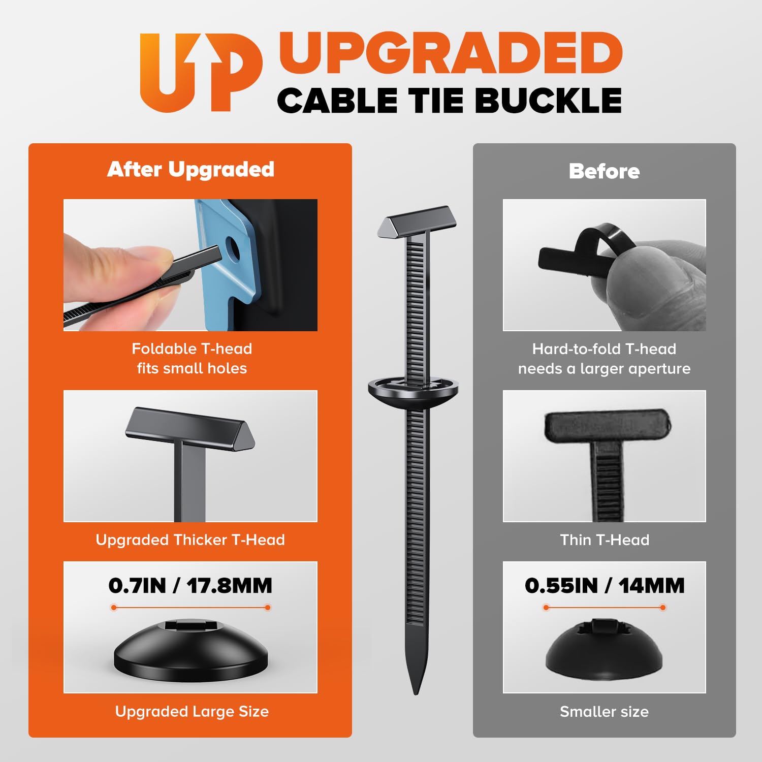 Design Upgrade: This nylon universal cable tie buckle features a T-shaped head with a 3D triangular design, making it easier to fold and allowing it to pass smoothly through apertures smaller than those of other cable tie buckles on the market (as small as 7.4mm /0.29 in). The three-tooth cable tie buckle is larger than the previous version, facilitating more convenient installation and significantly enhancing stability