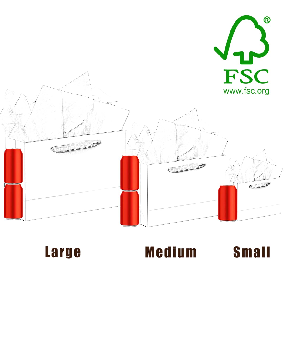 Safe:Quality is our top priority. Bag made of 100% high quality recyclable strength cardboard , non-toxic and odorless.With our FSC certification (FSC-C215221), you knew that our paper is sourced from responsibly managed forests