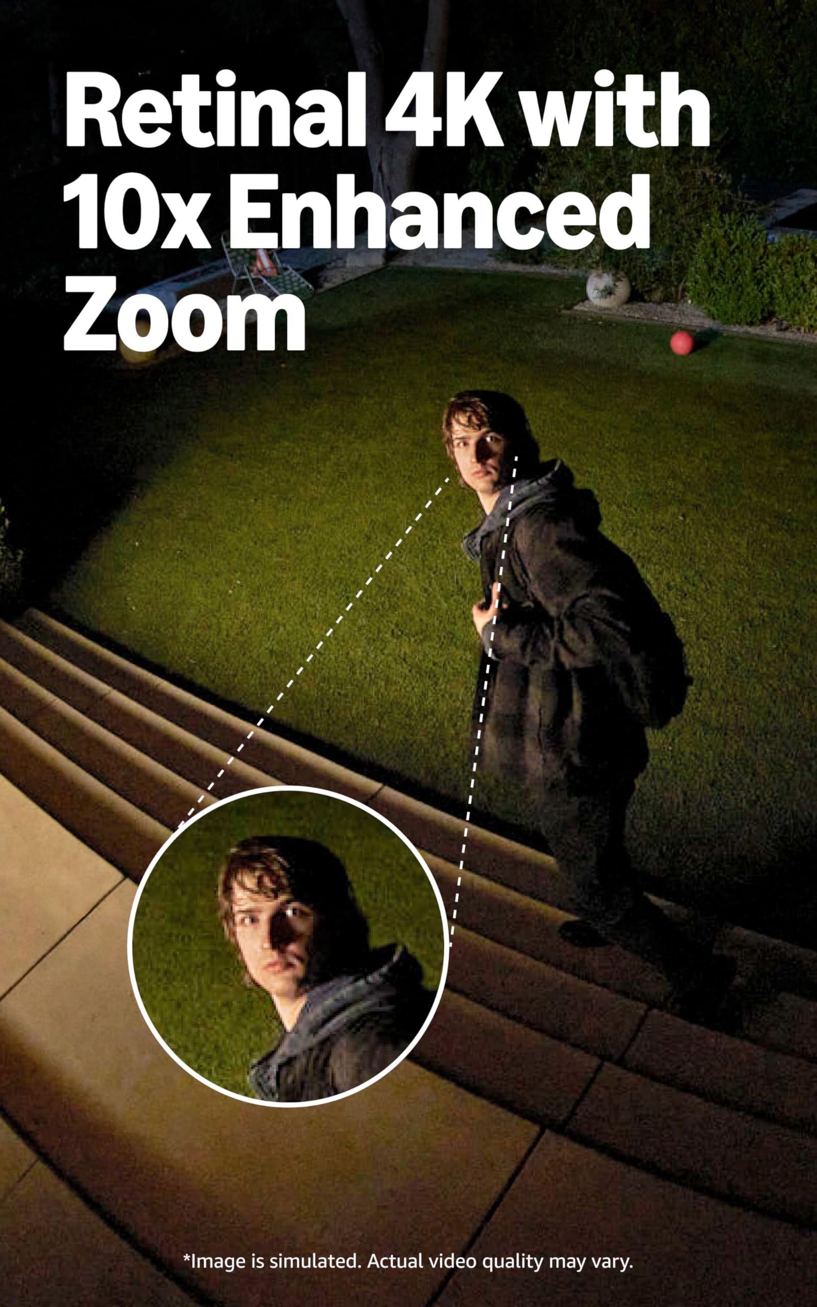 Capture it all with Retinal 4K video — See every detail of your home or business in full view — powered by Retinal 4K. (Video quality may vary based on internet bandwidth and device temperature.)