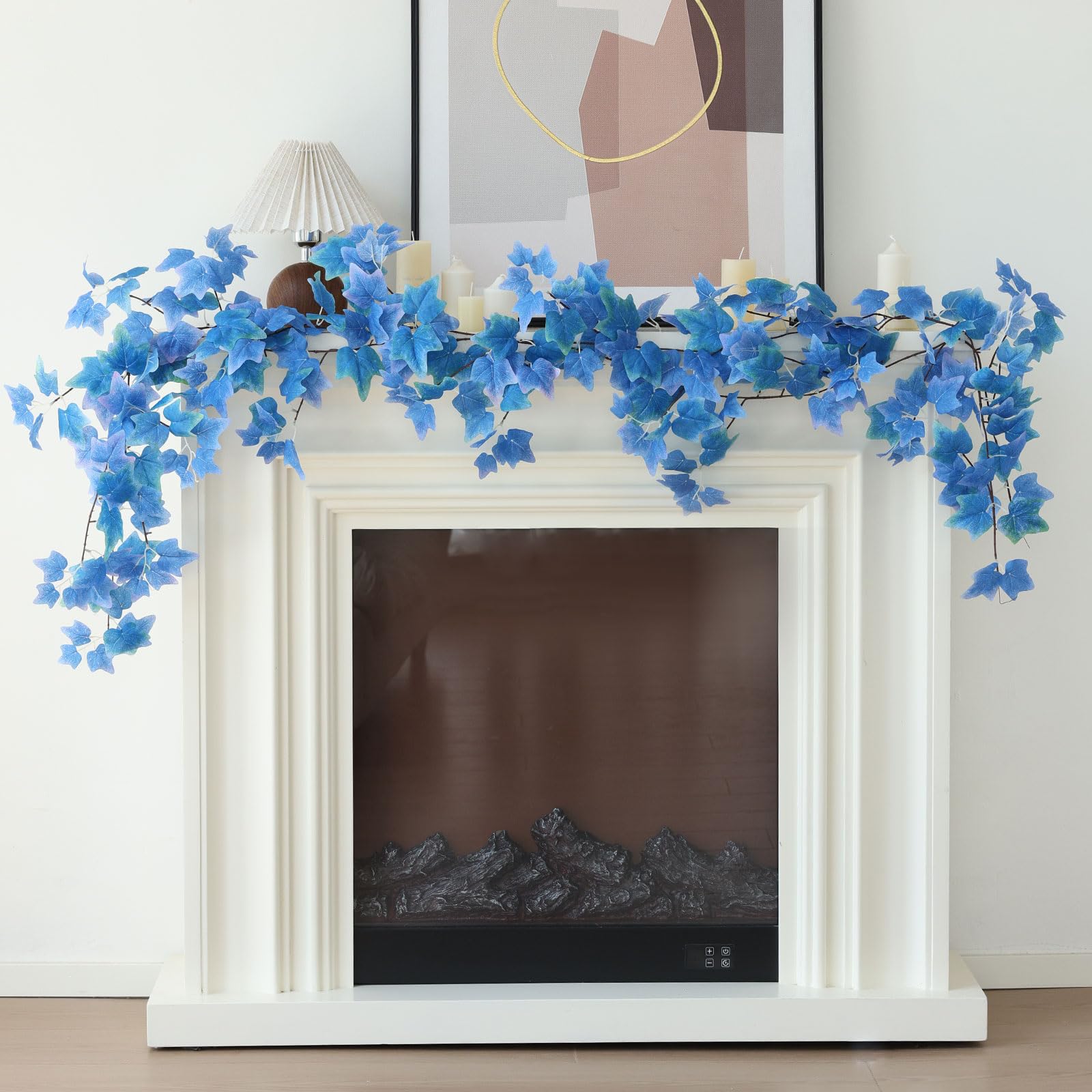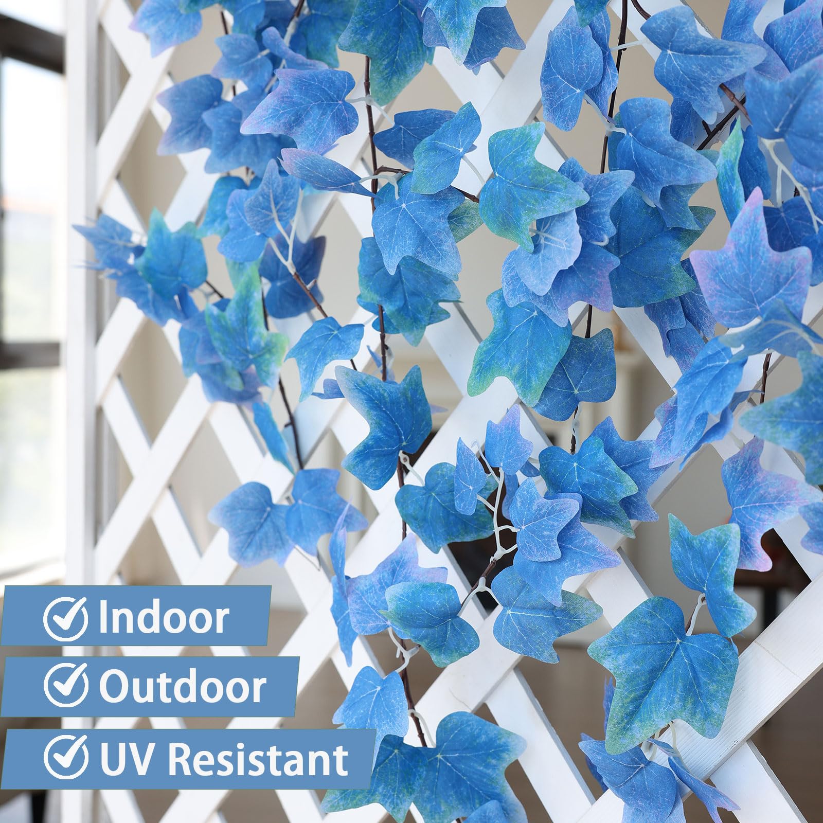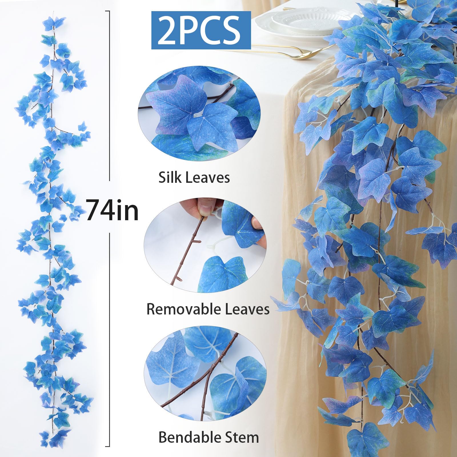 mizii 2 Strands Artificial Vines Blue Ivy Garland 74" Fake Vine with Silk Leaves Faux Hanging Plants Greenery Decoration for Outdoors Wedding Party Indoor Bedroom Home Wall Room Decor (Blue)