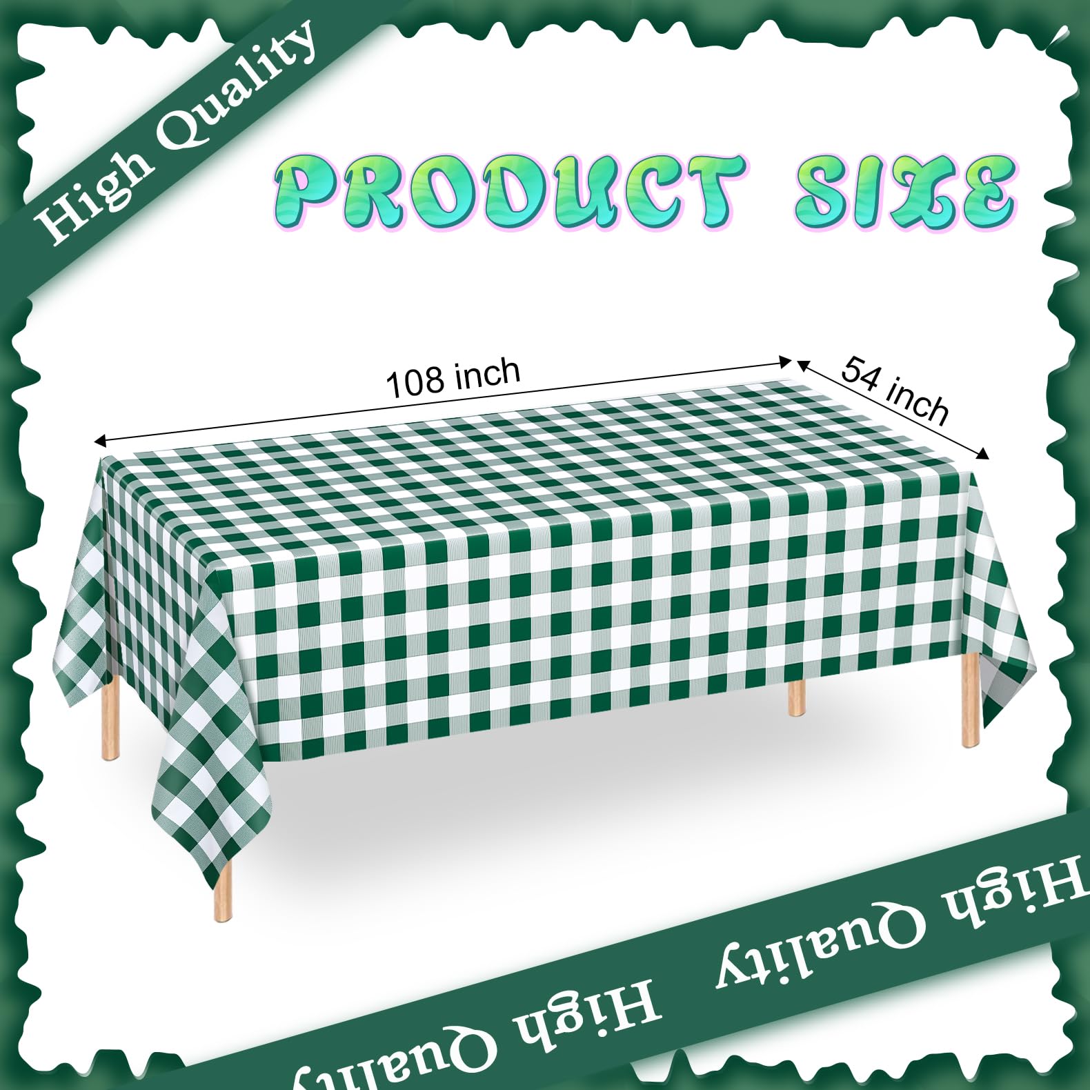 Party Theme Application: Green and white and white checkered tablecloth design can be well matched with various entertainment scenes, suitable for birthday theme parties, children's parties, outdoor activities, barbecue parties, picnics and so on