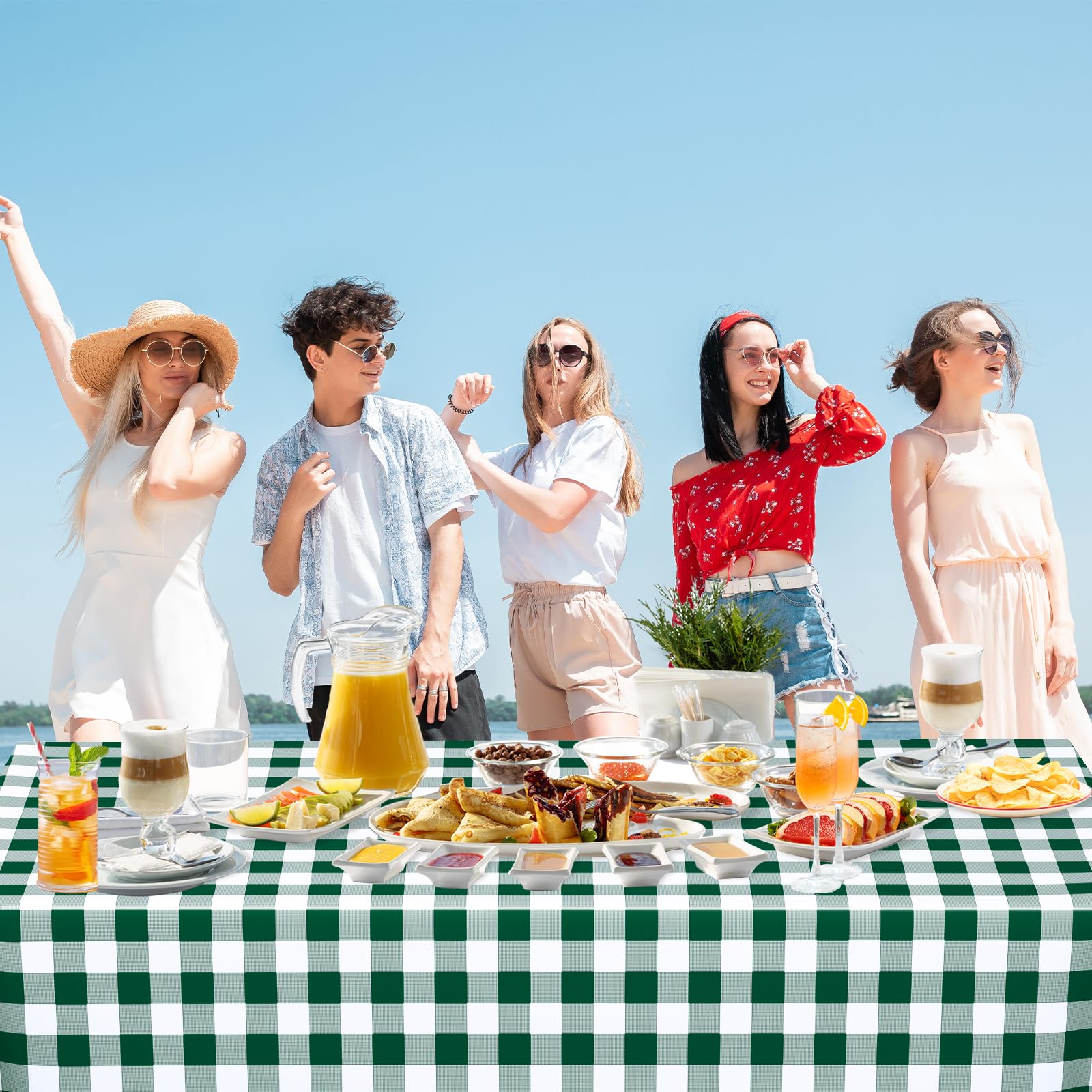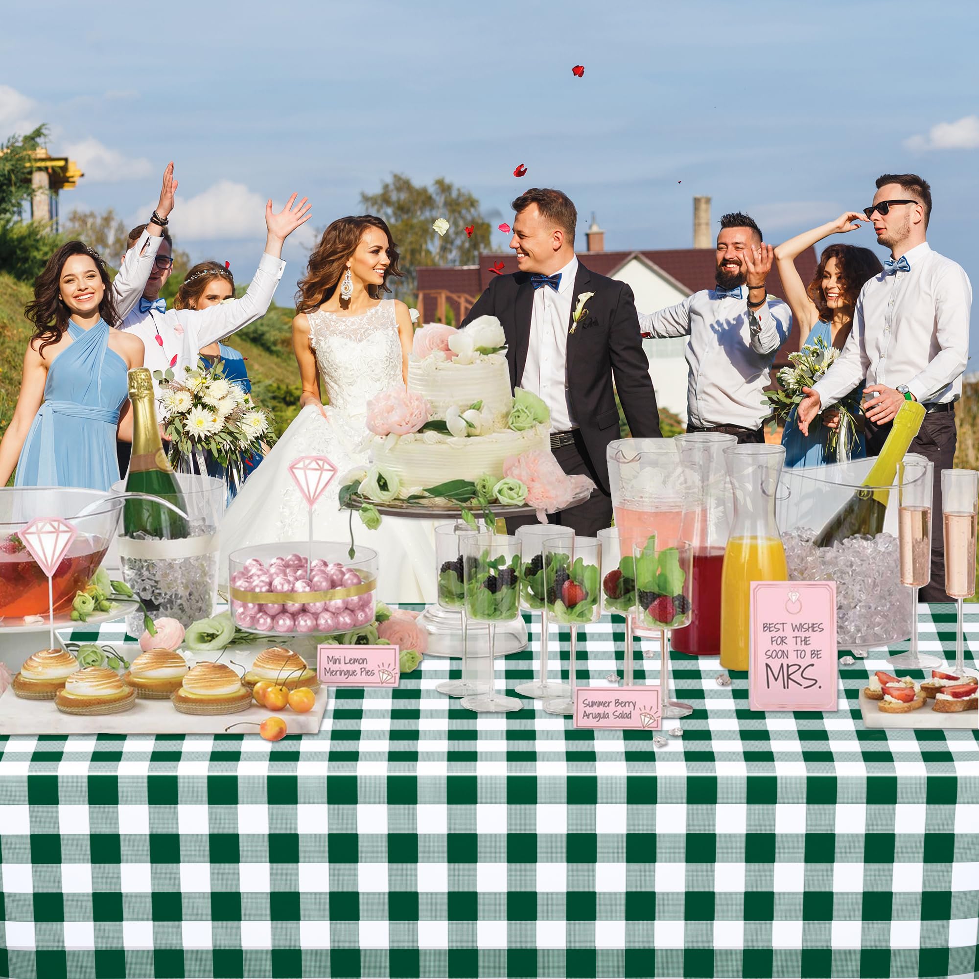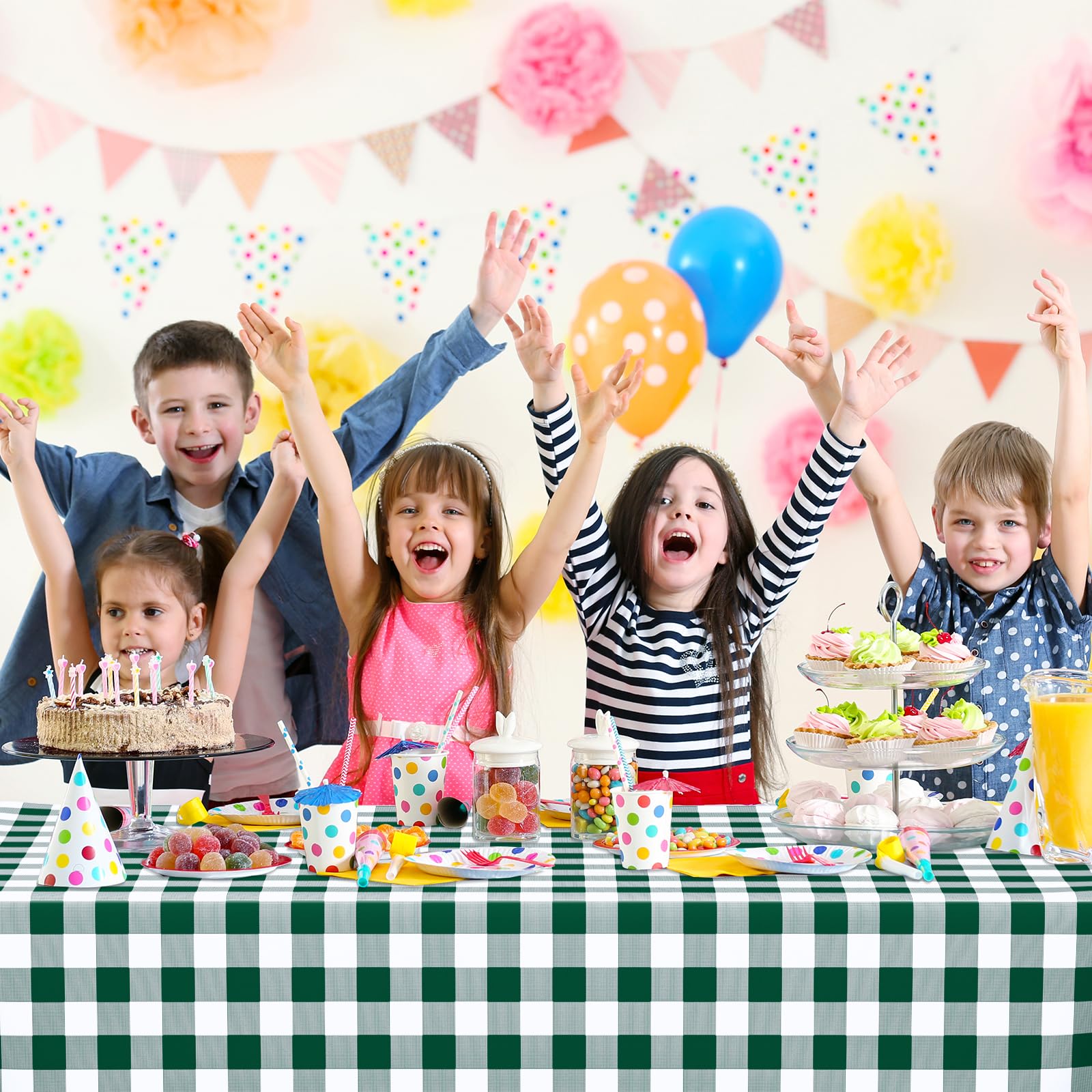 Easy to Clean: The surface of the green checkered tablecloth has a good waterproof and oil-proof effect, which can effectively prevent food and beverage spills from making the table dirty, easy to clean, just pack up and throw away after the party