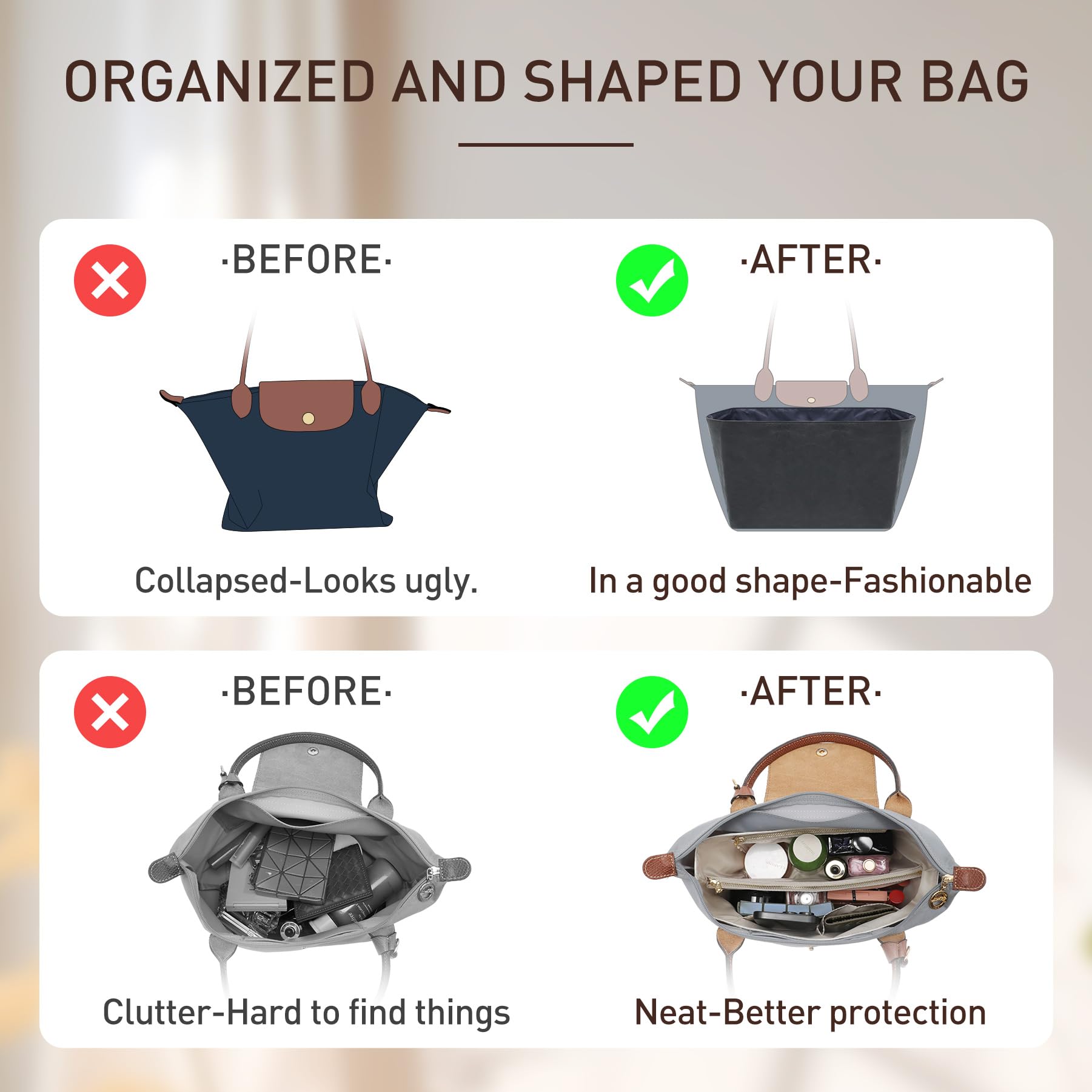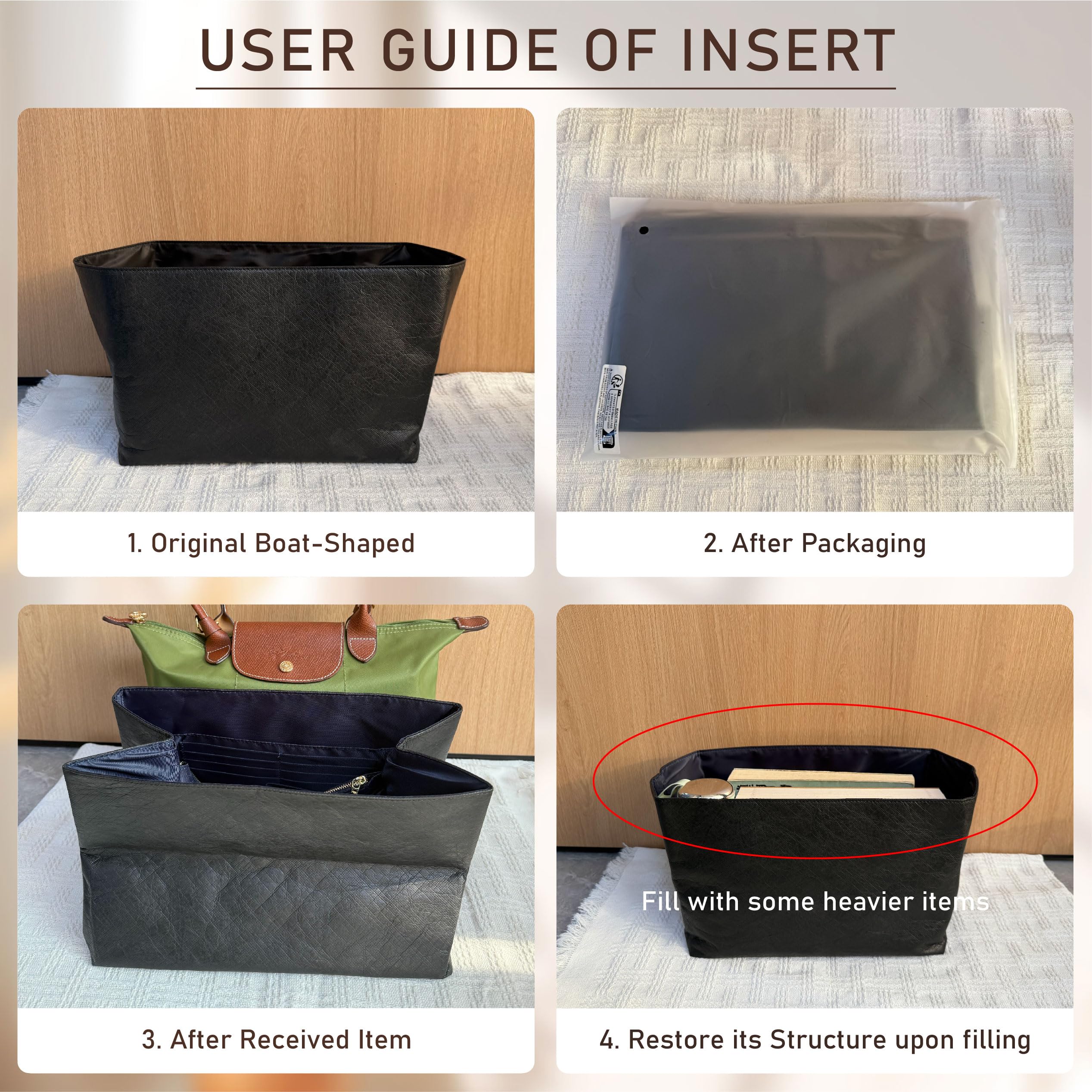 2025 UPGRADED MATERIAL: This long champ large organizer is made of newly upgraded premium DuPontPaper material, not only long champ insert are ultra-lightweight, waterproof and easy to clean but also provides a sturdy, non-deforming structure that no pilling and support foldable. So this long champ organizer insert is easy to insert and remove from the handbag, does not add to weight to your bags