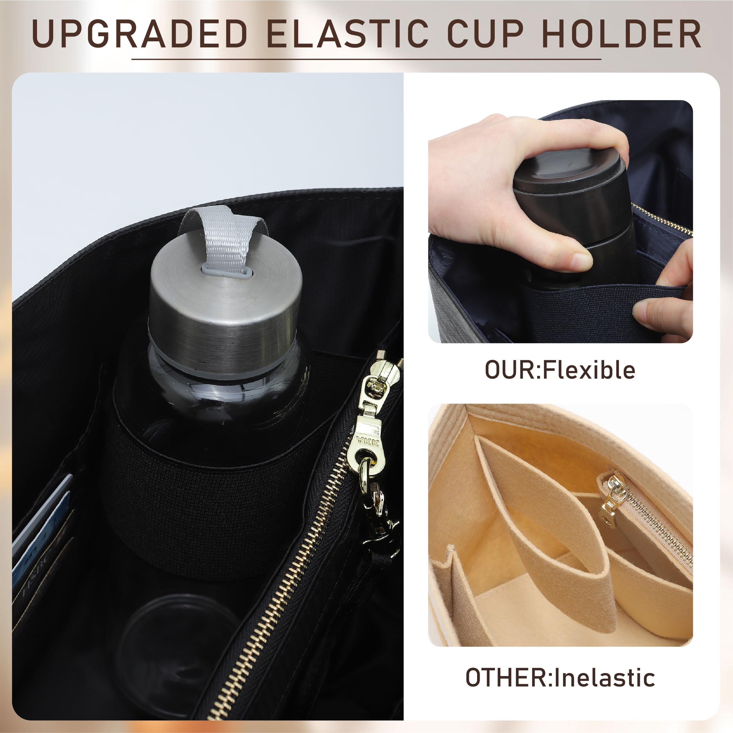 MULTI-COMPARTMENTS: Featuring six compartments, equipped with smooth and sturdy YKK zipper, providing excellent protection for your valuable and personal items. The simple and practical compartment design of this tote bag organizer insert le-pliage large not only meets our daily needs but also increases the storage space in the bag