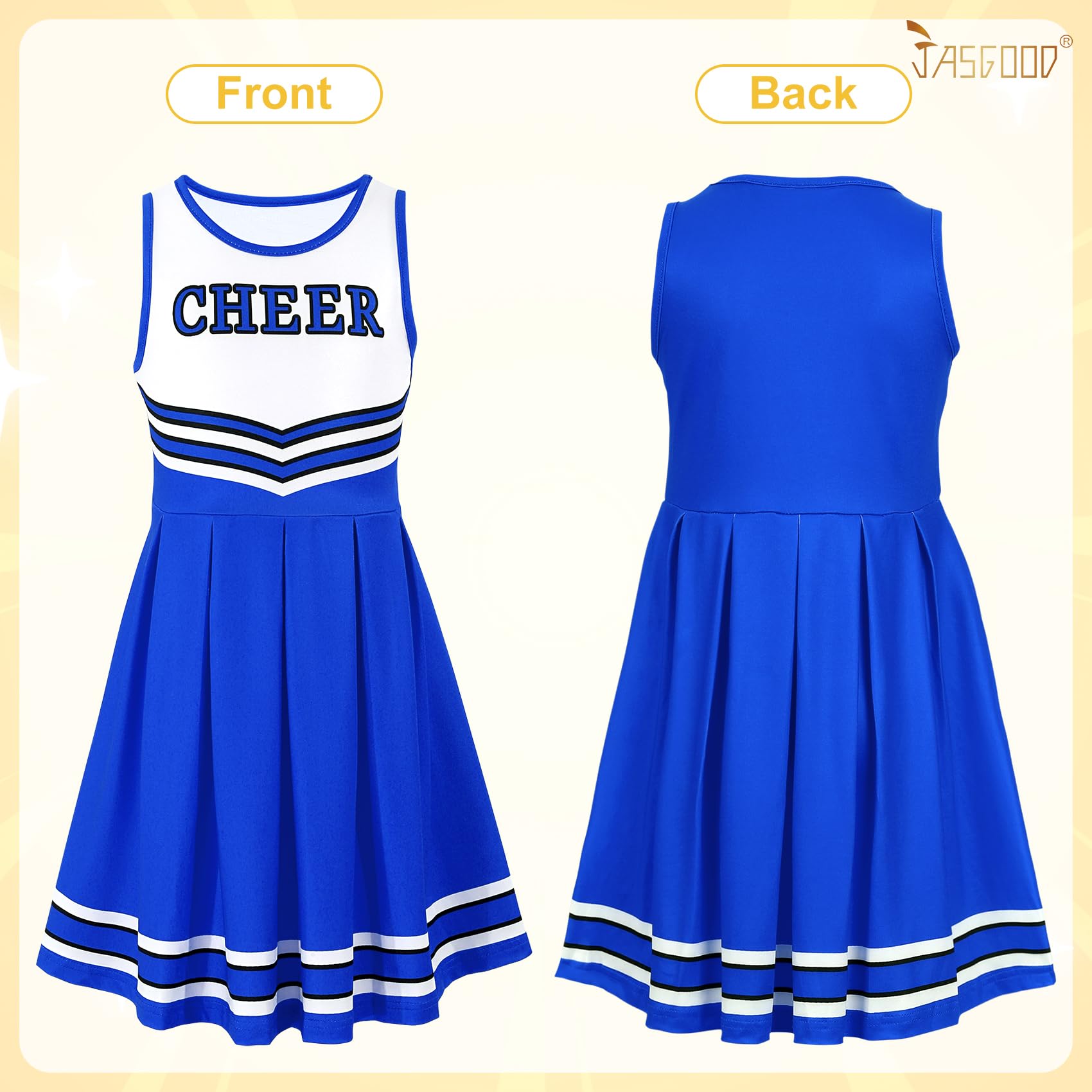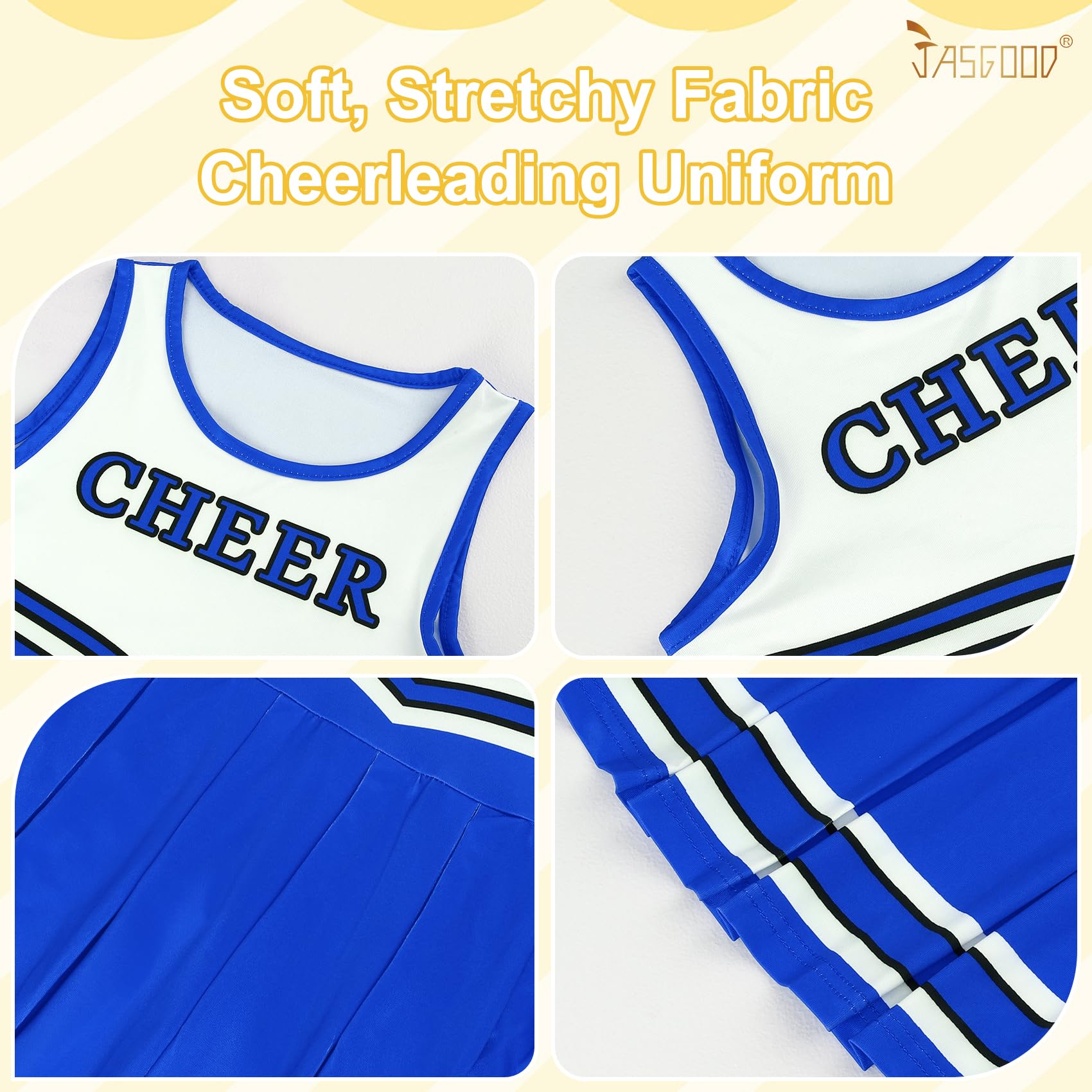 Top-Quality Material: Cheerleading dresses are made of a blend of 95% polyester and 5% spandex. The material is elastic, breathable and skin-friendly. It supports cold water machine washing, is durable and wear-resistant.
