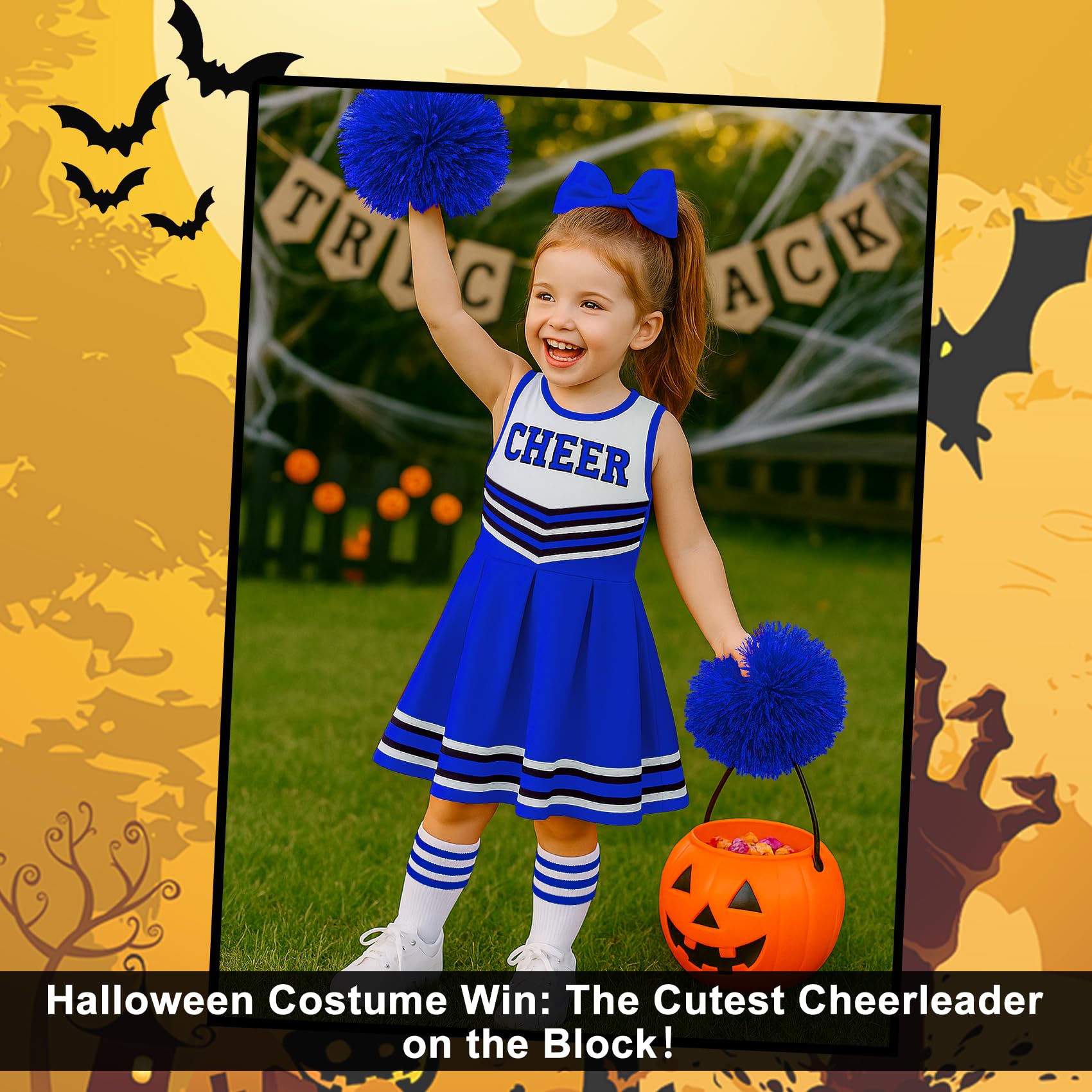 Versatile Occasions: This cute girls Halloween cheerleader costume set is versatile for Halloween cosplay, theme parties, school celebrations, school spirit days, sporting events or family dress-ups. It can handle all happy moments and is the perfect gift for girls, opening up endless celebration possibilities!