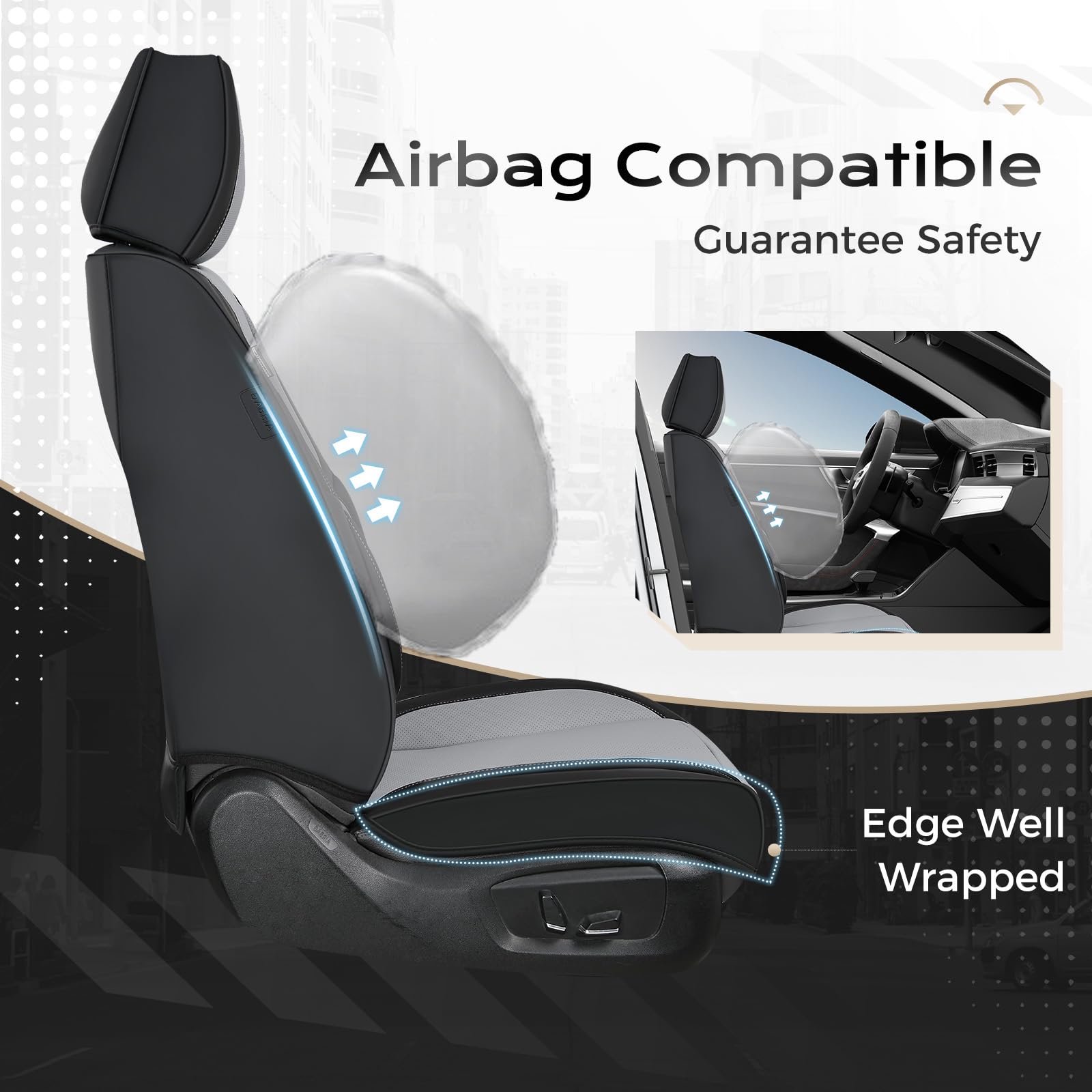 MAINTAIN FUNCTIONALITY - The waterproof seat covers are engineered around the car, keeping the seat's full function and control, such as airbag, seatbelts and seat adjustments. Separate headrest covers allow easy headrest adjustment for optimal comfort and safety