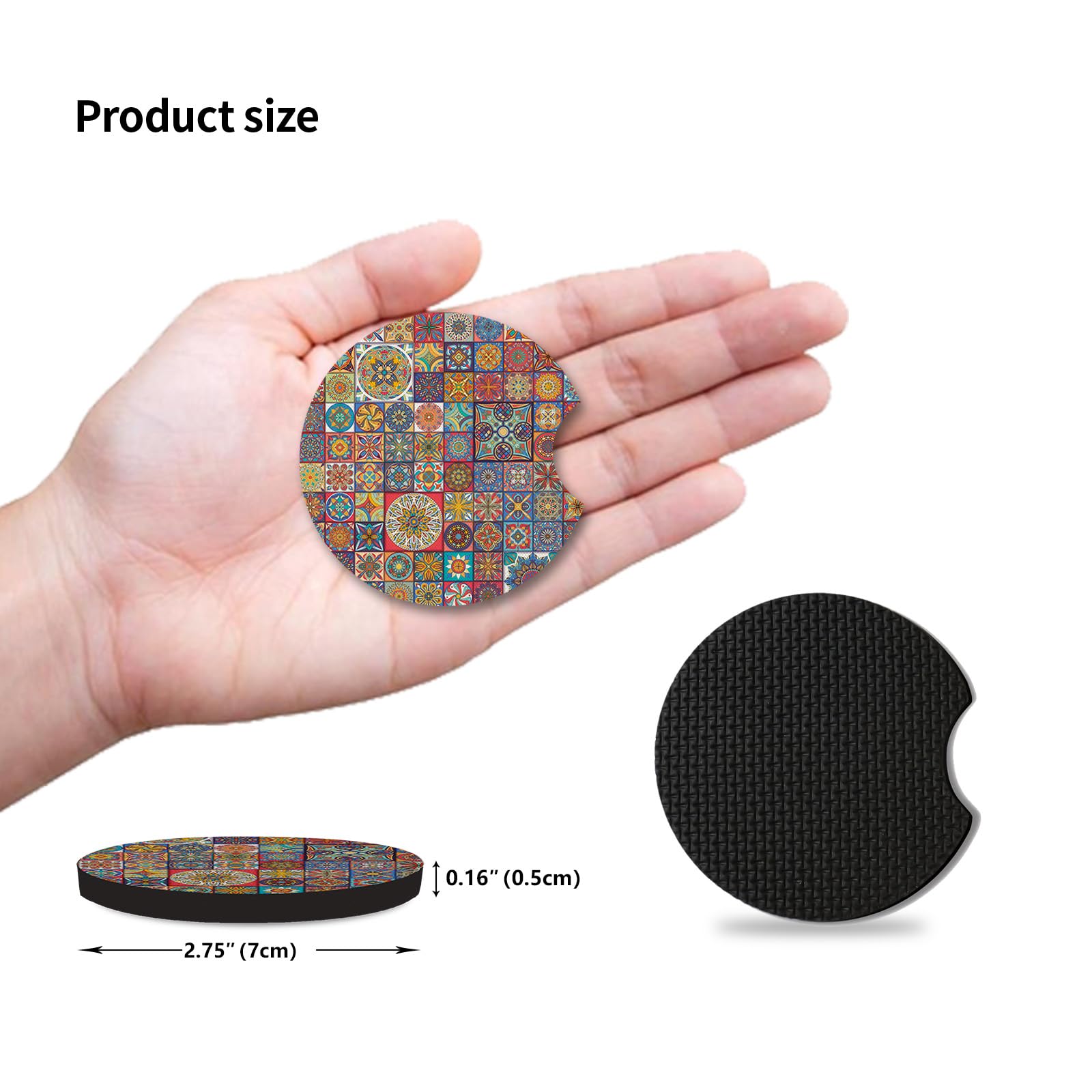 【Please note】SIZE MATTERS! Diameter 2.75" will fit cup holders in most cars,But just in case, before purchasing, measure the diameter of your car cup holder to make sure it is compatible with our coasters