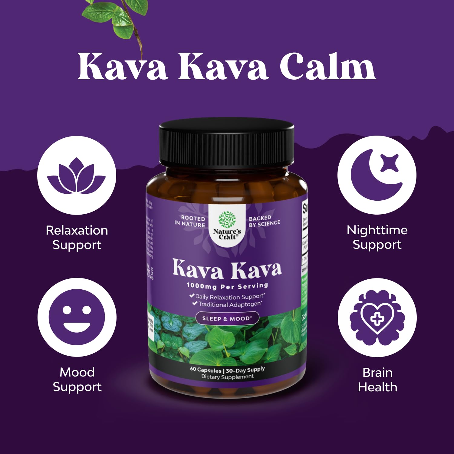 NATURAL CALM & RELAXATION SUPPORT – Our Kava Kava capsules are designed to promote relaxation, stress relief, and a balanced mood. With 1000mg of kava kava extract per serving, this fast-acting calming supplement helps you unwind, de-stress, and achieve a sense of calm.