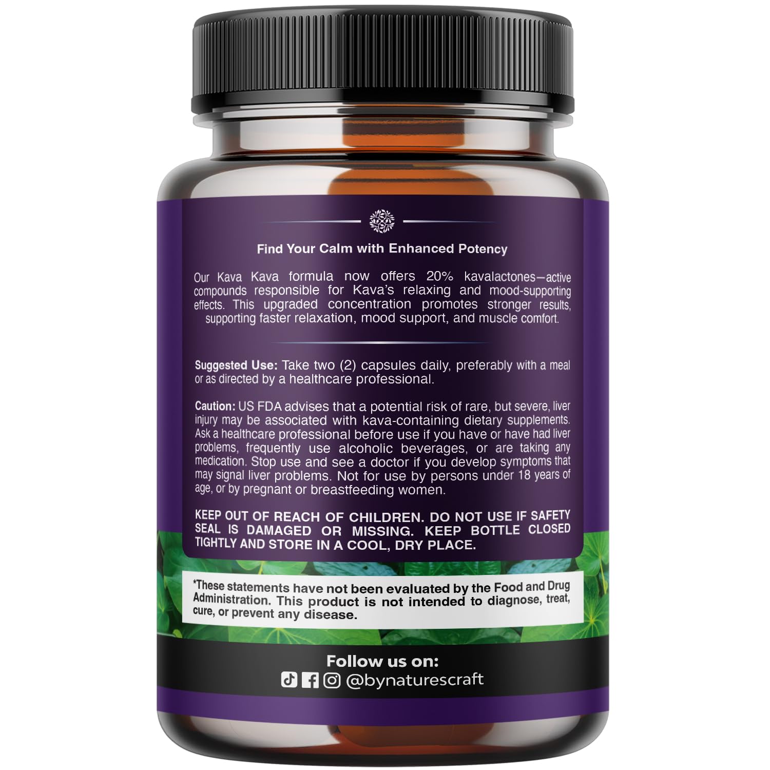 HOW TO USE & IMPORTANT WARNINGS – Take 1 to 2 kava root capsules daily, preferably with food, or as directed by a doctor. Consult your doctor before use if you are pregnant, nursing, taking medications, or have liver conditions. Not intended for individuals under 18 years old.