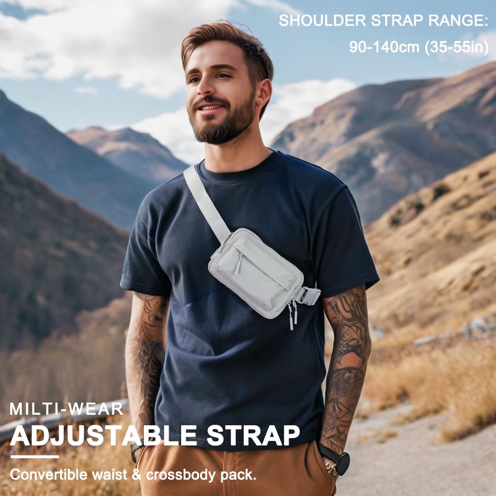 Versatile Style - Transform this versatile belt bag from waist pack (fits 35-55 inches waist) to crossbody bag (21-39 inches strap). Perfect fanny packs for women who love no-hands convenience or fanny pack for men who value practicality in travel essentials.