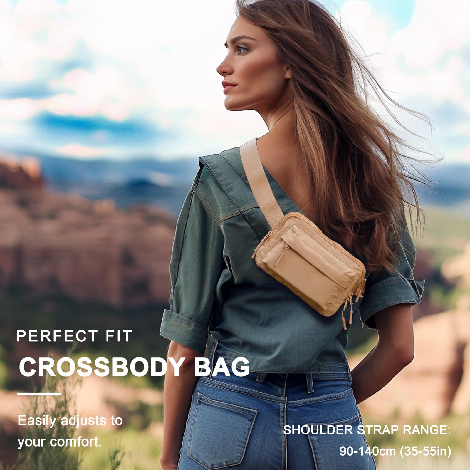Small Size, Big Surprise - Features 4 zippered compartments in this crossbody bag, perfectly storing phones, passports, keys, and other travel essentials. Great for fanny pack for girls' small items or men’s daily necessities.