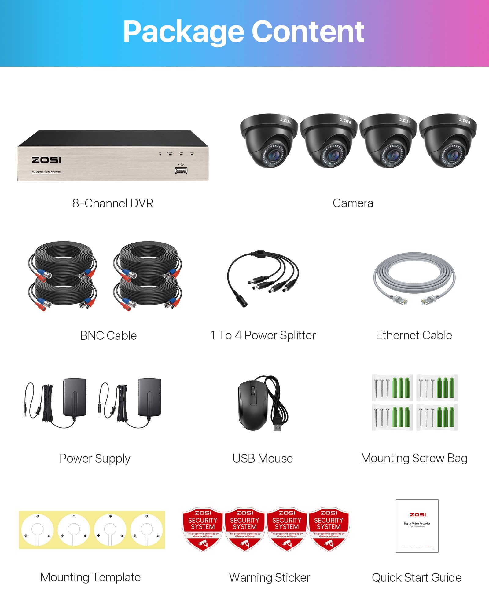 【Expandable 8-Channel System】Our flexible 8-channel 4-in-1 DVR supports analog HD-TVI, CVI, and AHD cameras. Easily expand your surveillance coverage by adding up to 4 additional 720P or 1080P bullet or dome cameras.