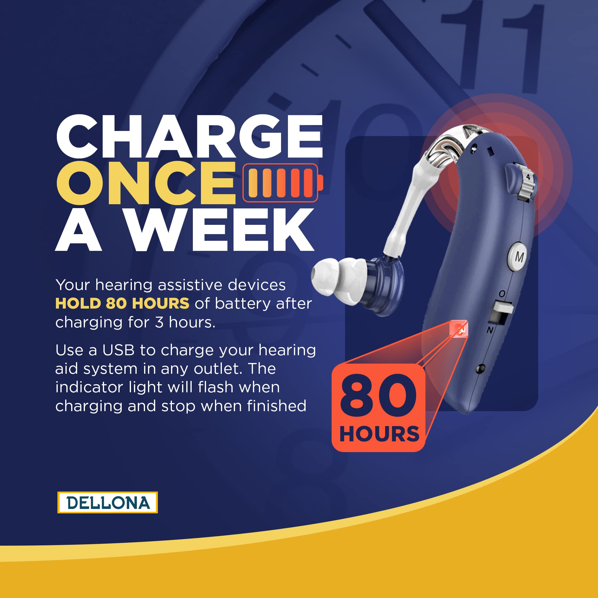 ✔️ Charge Once a Week — 80 hours of battery life after just 3 hours of charging, perfect for rechargeable hearing aids for seniors.