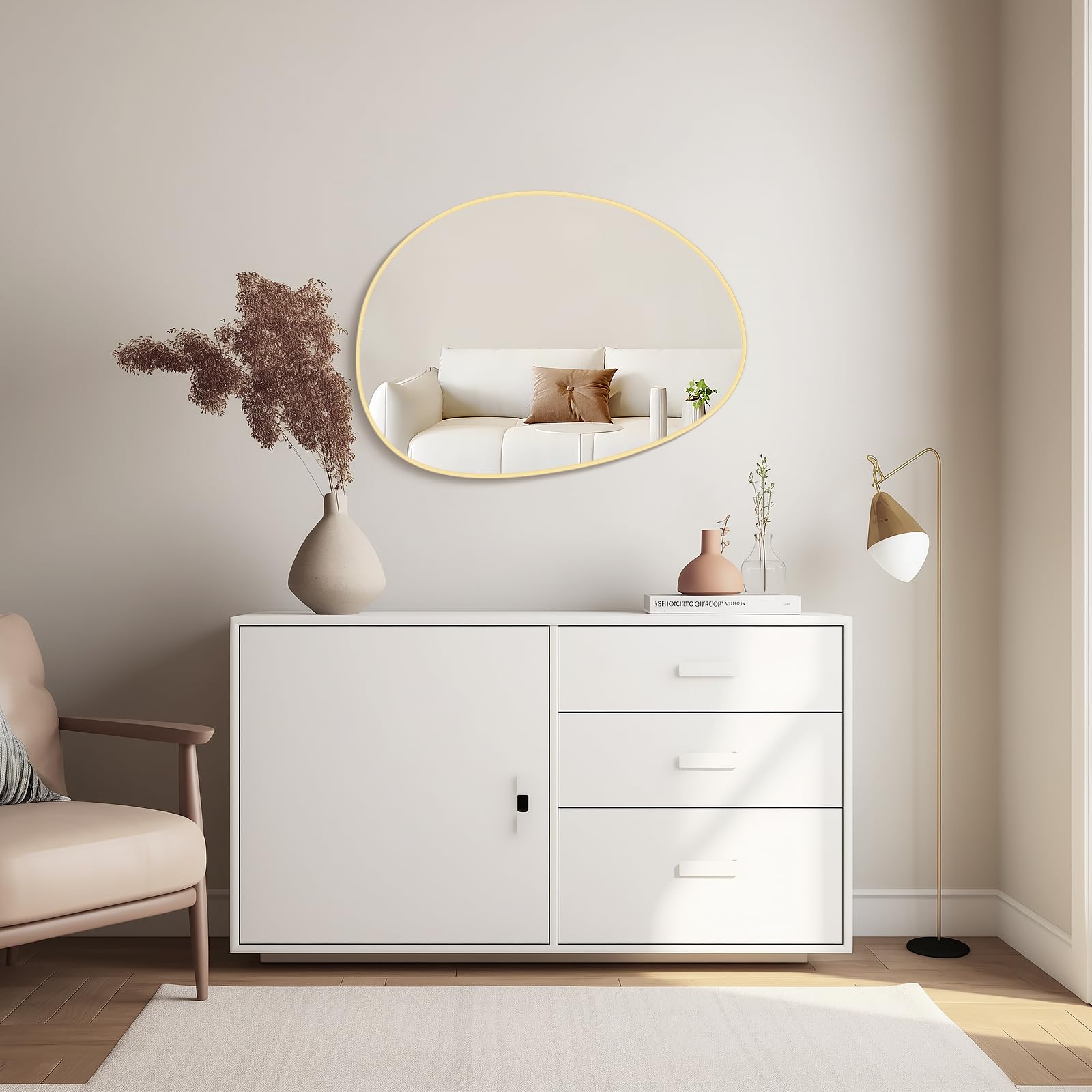 WallBeyond Irregular Wall Mirror, Asymmetrical Mirror Wall Mounted with Gold Framed for Living Room, Bathroom, Bedroom, Entryway Wall Decor, 28"×21", Gold