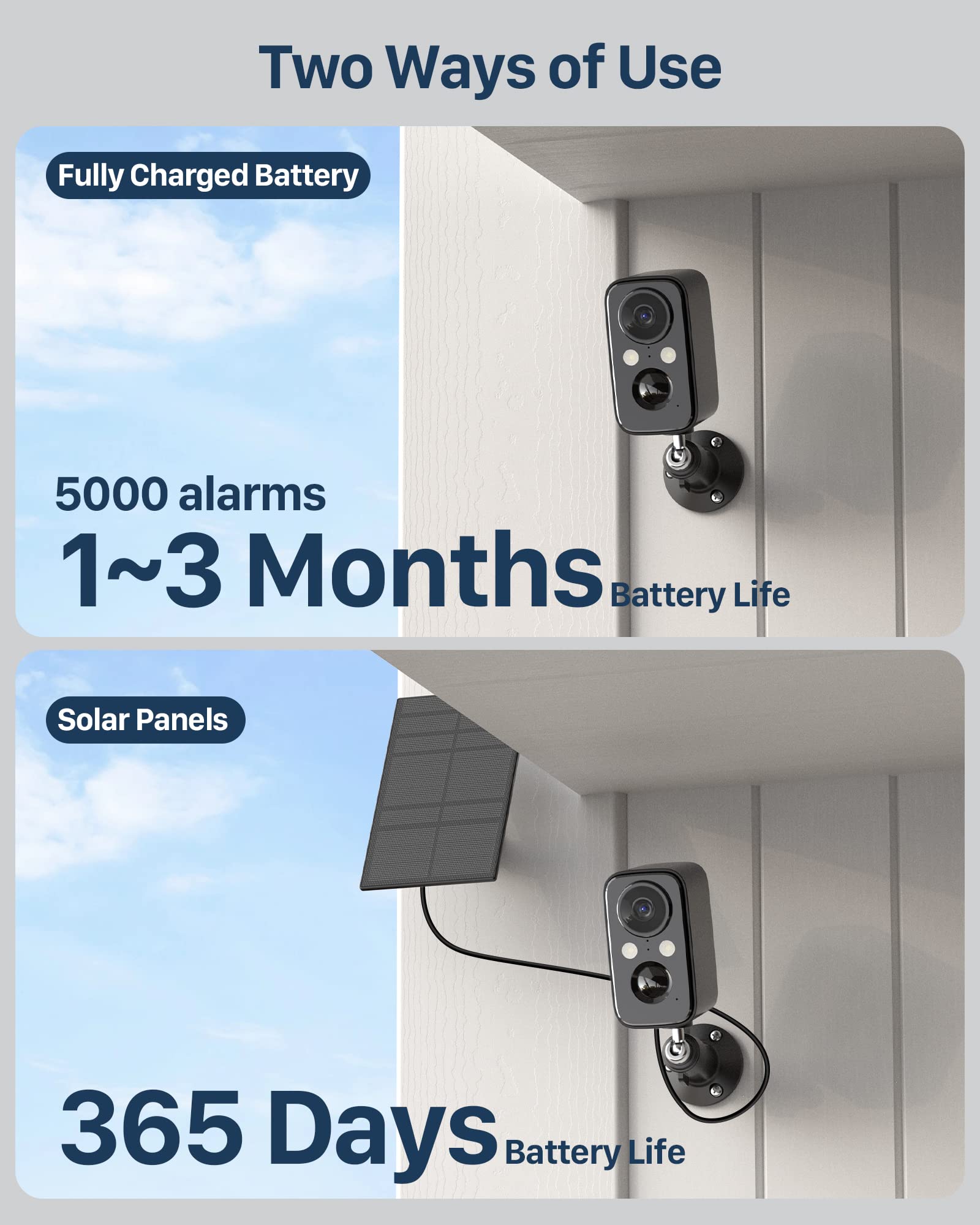 【IP66 Waterproof & Wide Applicability】- The wireless cameras for home security outdoor have waterproof and dustproof housing to ensure they keep working through any weather. One APP can add multiple cameras to control. You can equip this solar camera outdoor wireless together anywhere in your home. Such as indoor/outdoor, yard, garage, shop, and other places.