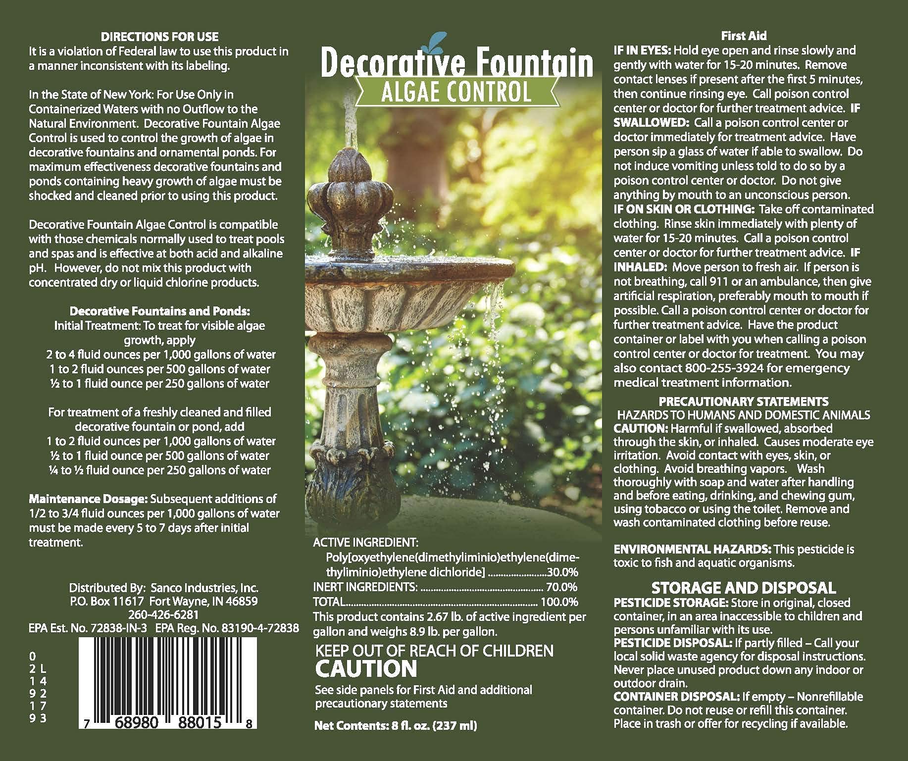 Fountain Algae Control Solution 8-Ounce Bottle. Also available in 32 oz. and 64 oz. bottles. DO NOT USE WITH FISH.
