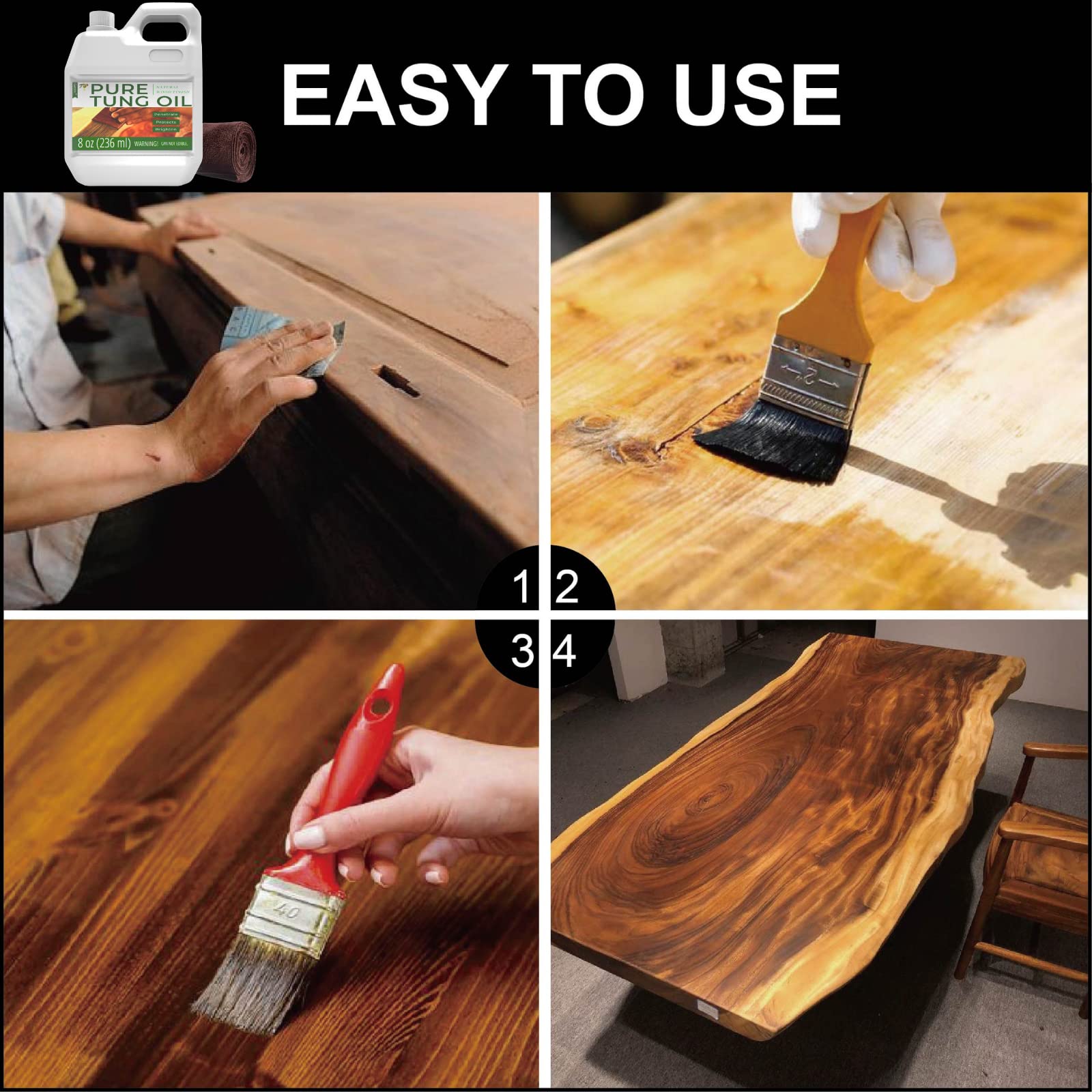 EASY TO USE - You just need to apply a thin layer of pure tung oil evenly on the surface of the wood product with a soft towel or brush, and let the tung oil cure at room temperature. Finish and repeat 2-3 times and you will have a perfect wood finish.
