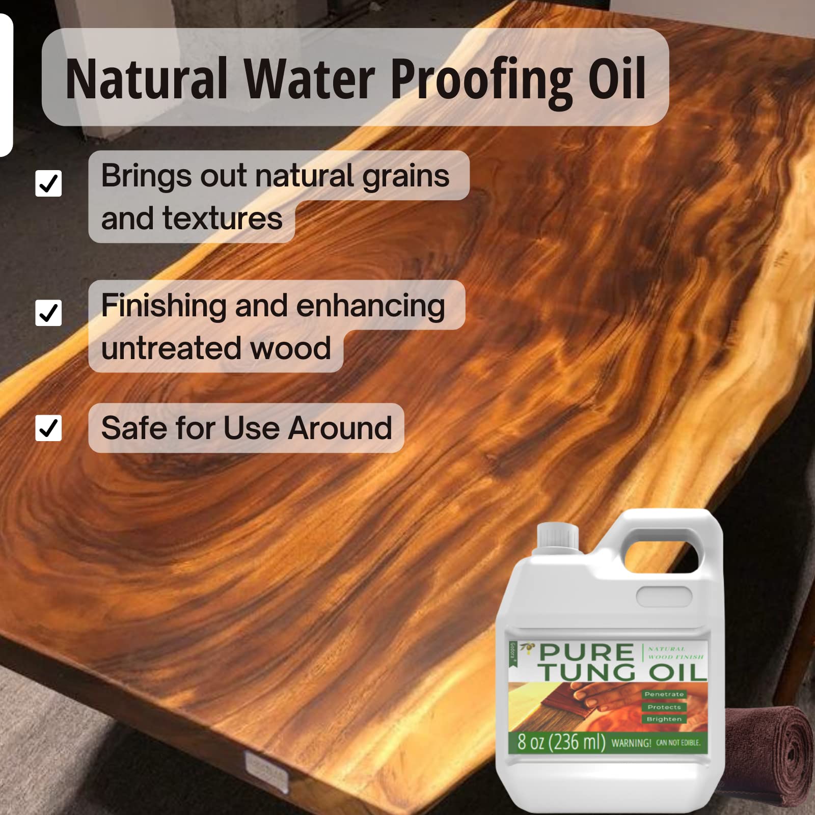 WATERPROOF - Our tung oil can be used as a waterproof wood sealer. Pure tung oil can form a waterproof finish for your wood products. After using pure tung oil, your wood products will have a protective barrier on the surface, and you will no longer have to worry about your wood products being damaged by moisture and stains.