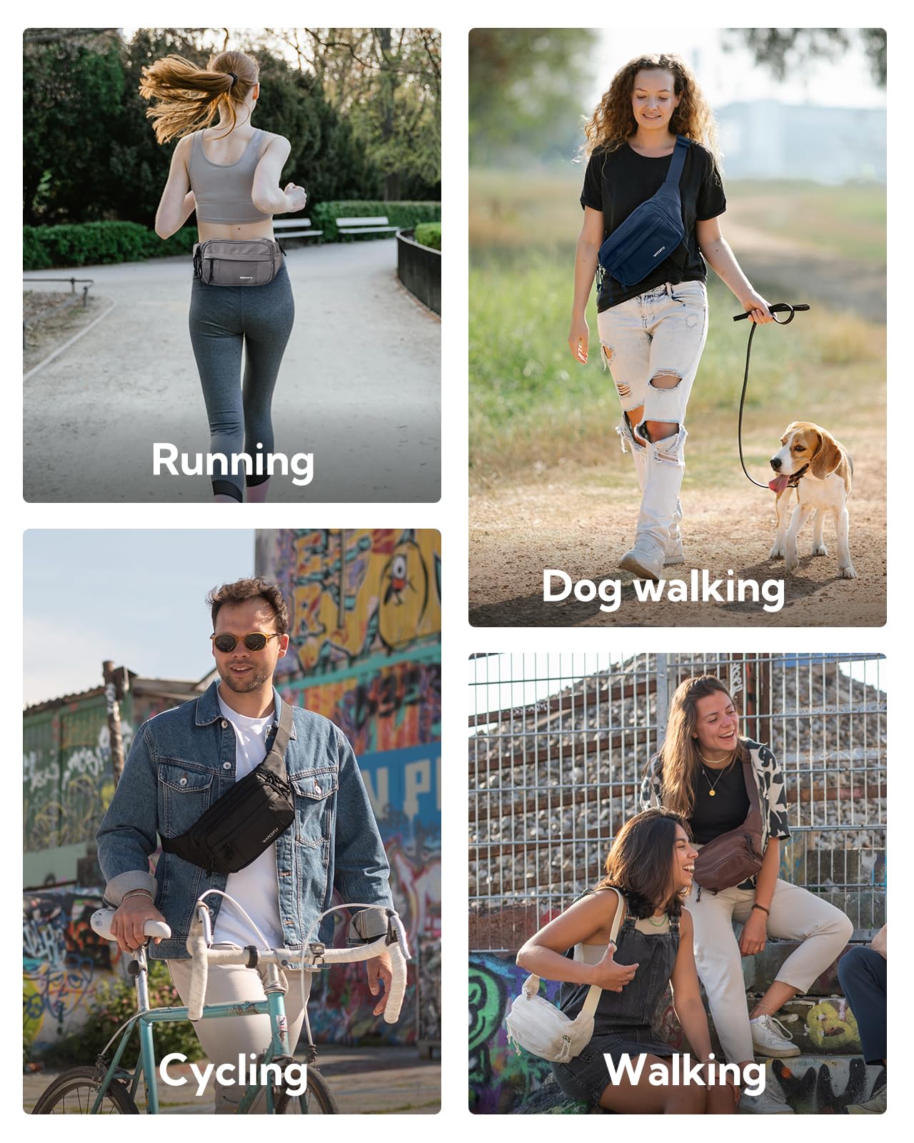Roomy & Adjustable Strap: The size of large waist pack is 9.06 x 5.11 x 3.54 in, it can hold your mobile phone, cards, cash, passport and umbrella, meets all your storage need. A flexible strap ranges from 31.49-49.21 in, fit your waist even better