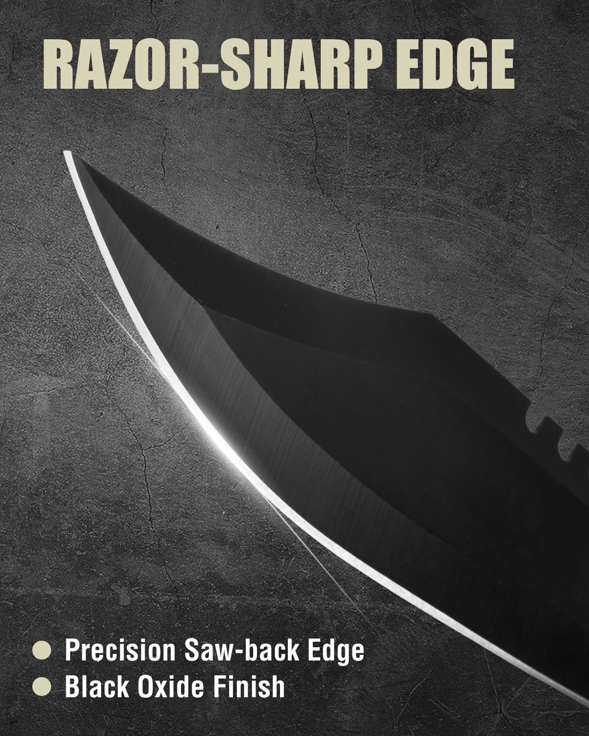 Razor Sharp Clip Point Blade: The survival Knife is made of stainless steel for excellent hardness, improved edge retention and rust resistance. Survival knife's clip point blade features saw back, black anodize, ideal for camping expeditions, survival training or military combating