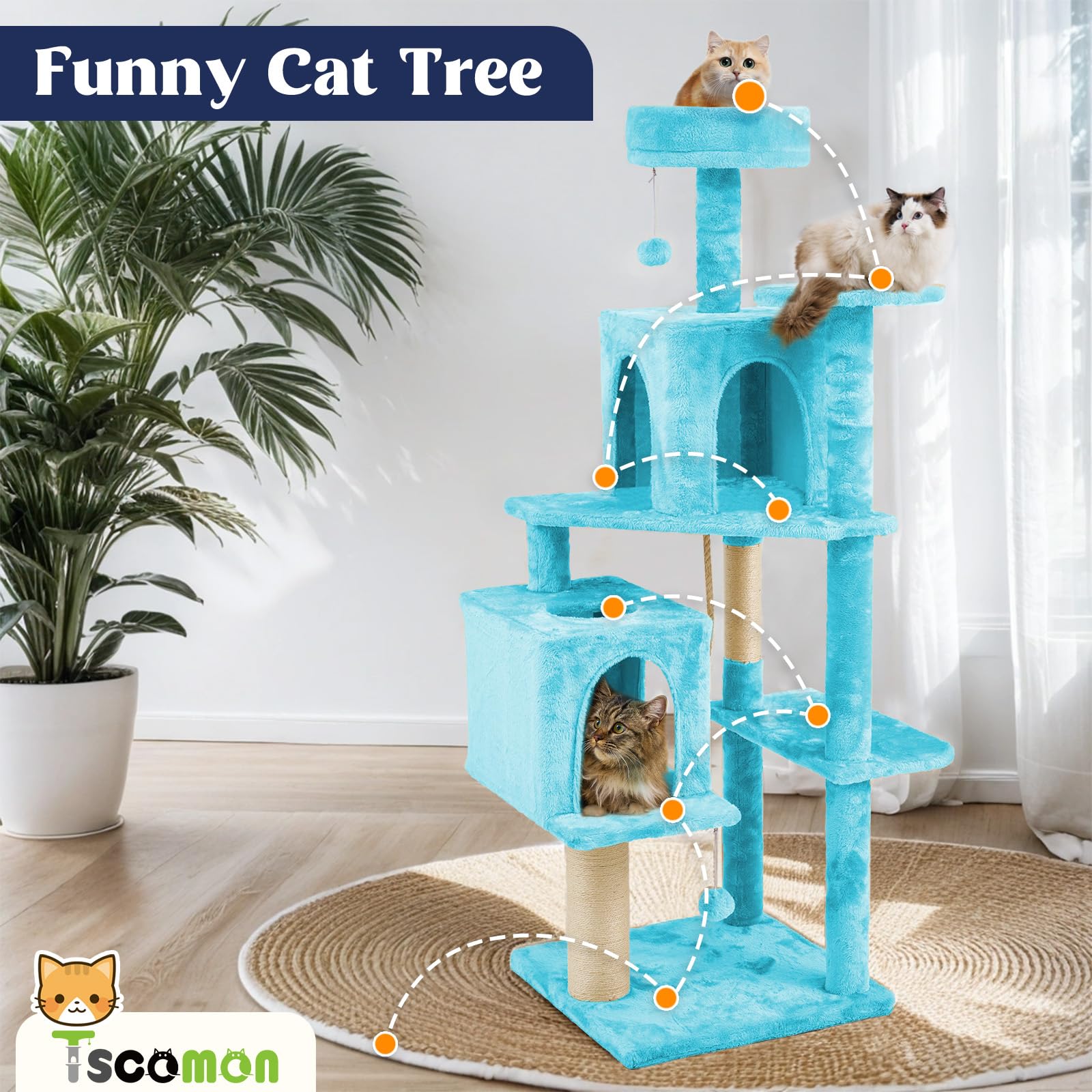 【HIGH QUALITY MATERIALS】TSCOMON cat tree features a plush covering with 600GSM softness, ensuring comfort. All scratching posts are made from durable natural sisal, offering lasting quality.