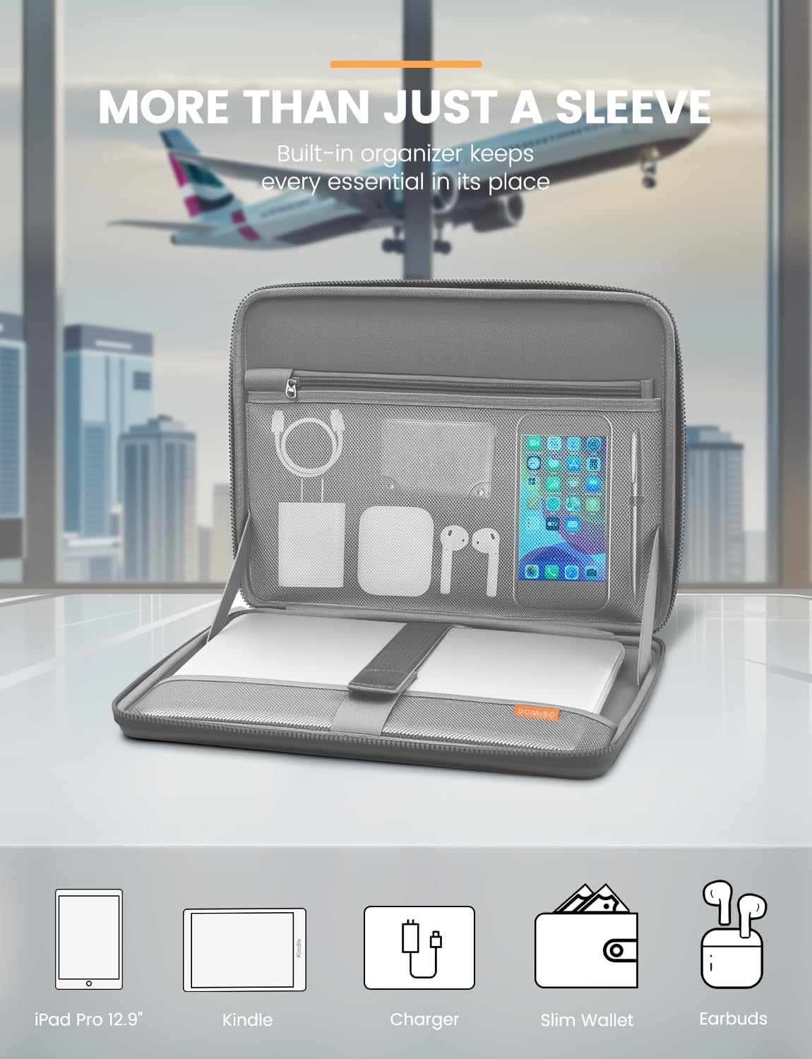 Multi-Functional Inner Pocket : With a built-in zippered compartment, these laptop sleeves keep your charger, phone, cables, and pens neatly in place. No more tangled wires or forgotten accessories. It's the small convenience that matters—especially when you’re dashing through terminals or working from anywhere with this macbook sleeve.