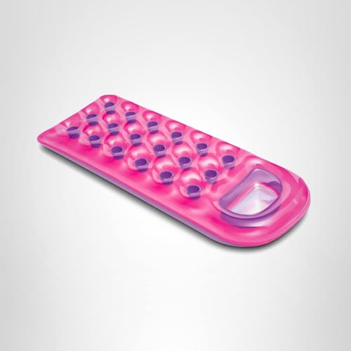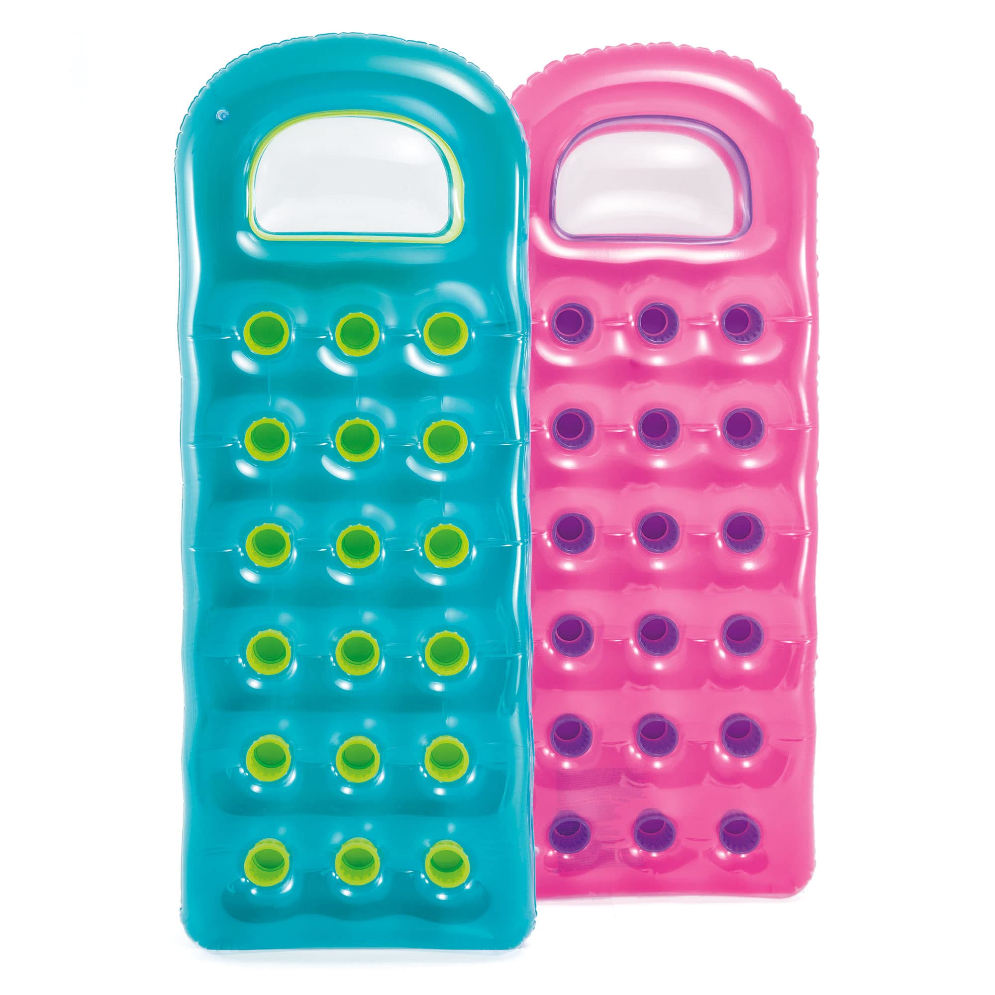Product Description Relax and enjoy the pool with the Intex 18-Pocket Suntanner Mat. Designed with a clear vinyl top, color pockets and coil-beam construction, this lounge has a built in see-through window that doubles as a contoured pillow for extra comfort while you float. Soak up the rays while relaxing in the pool. Featuring a comfortable built in see-through pillow, this is the right choice for a warm day on the water! Approximate deflated dimensions: 74in x 28in. From the Manufacturer 18-Pocket Suntanner Lounges