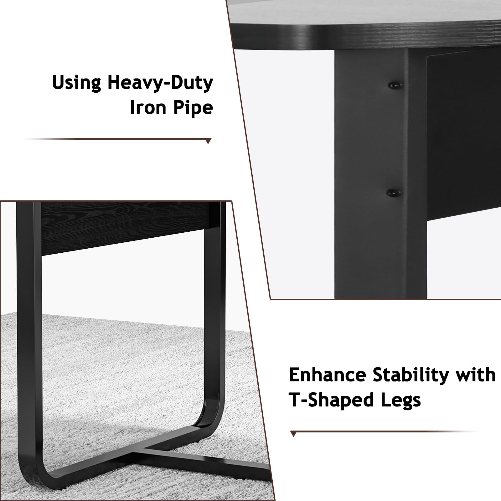 CLASSIC COLOR SCHEME ENHANCES STYLE: The combination of walnut and black gives this conference table a timeless elegance. The warm, natural texture of the walnut complements the calm, sophisticated aura of the black, creating a versatile color combination that works well in both modern minimalist and traditional office settings. This professional and elegant style enhances the overall ambiance of any conference room or office space, showcasing a refined and sophisticated aesthetic