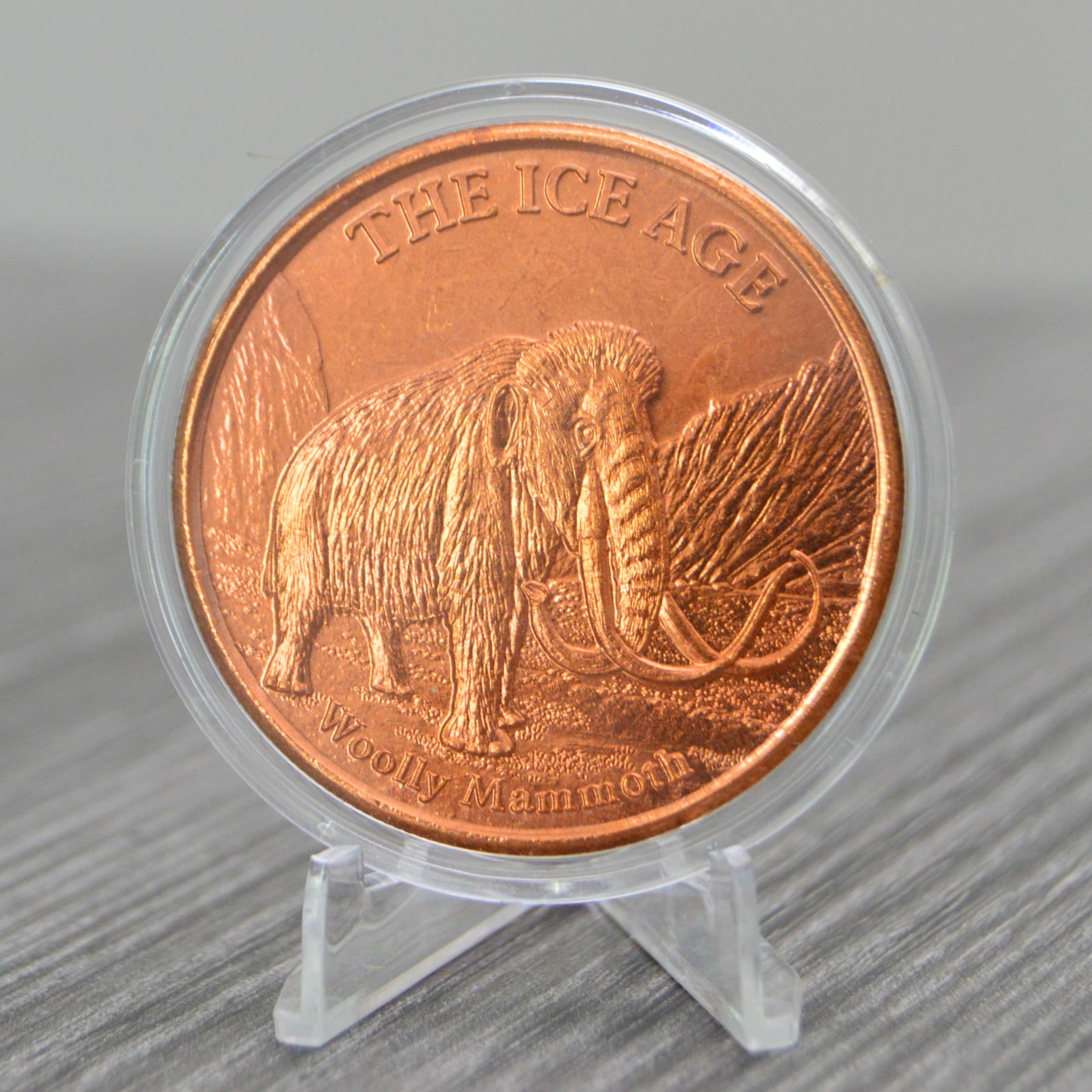 Journey to the Ice Age with the Woolly Mammoth Themed 1 oz Pure .999 Copper Round Bullion Coin. Expertly minted in the USA, this unique coin features the imposing figure of the Woolly Mammoth on the obverse, evoking the cool, primal atmosphere of the Ice Age, while the reverse hosts a majestic eagle. Each coin is struck from 99.9% pure copper, with a 39mm diameter, providing a tangible piece of history and a valuable addition to any coin collection or investment portfolio. To preserve its condition and luster, the coin is encapsulated in a protective case, ensuring its value for years to come. This unique coin is a perfect gift for history enthusiasts, coin collectors, and paleontology lovers. It comes with a Certificate of Authenticity (COA) by Heavenly Metals, guaranteeing its 99.9% copper purity and origin. Invest in the Woolly Mammoth Themed 1 oz Pure .999 Copper Round Bullion Coin and own a piece of the enthralling Ice Age era in the form of a finely minted copper coin. Secure your piece of prehistoric history today.