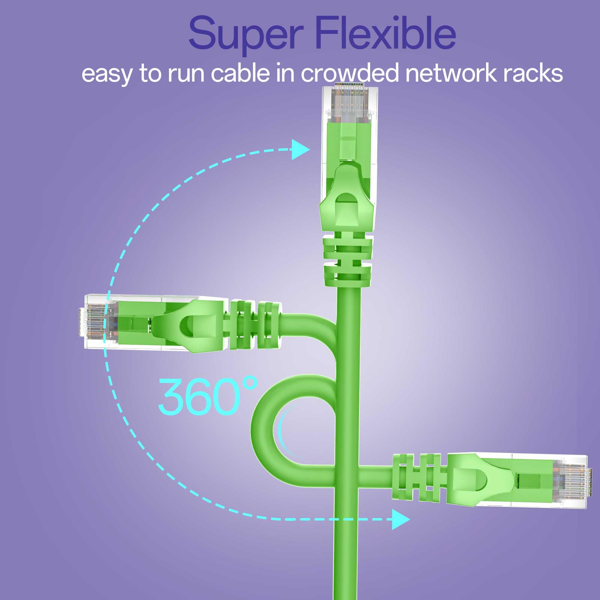 Widely Compatible : Cat6 network cables are equipped with RJ45 gold-plated plug-in connectors and stress relief protective sleeves, which effectively prevent bending and damage at the connection points. The Cat6 patch cable is suitable for network devices that contain RJ45 interfaces, such as switches, computers, printers, VoIP phones, game consoles, network televisions, camera, servers, etc.
