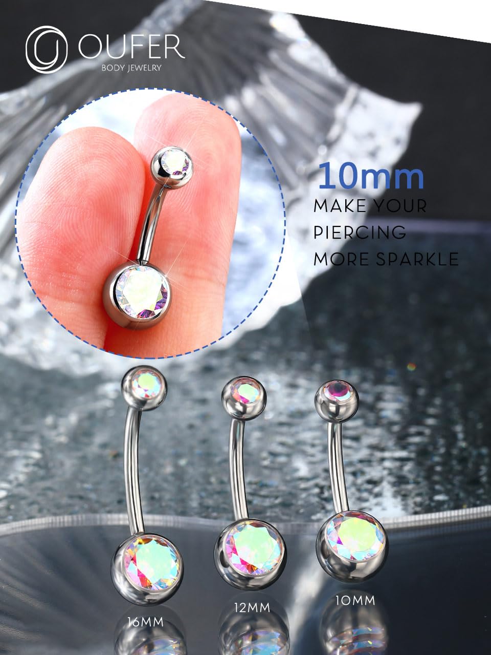 【Internally Threaded Design — The smooth internally threaded structure reduces friction and protects healing tissue, making this AB-sparkle piece a gentle upgrade to your belly button piercing, belly ring, and everyday belly piercing jewelry.**